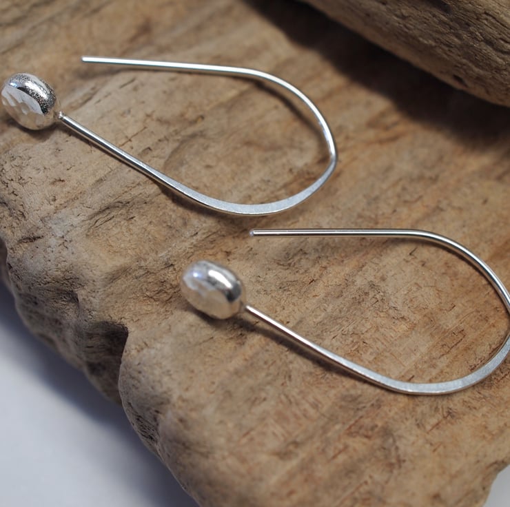 Argentium silver pebble drop earrings.
