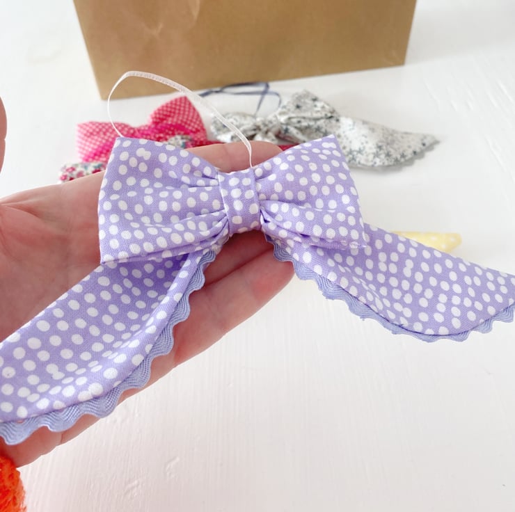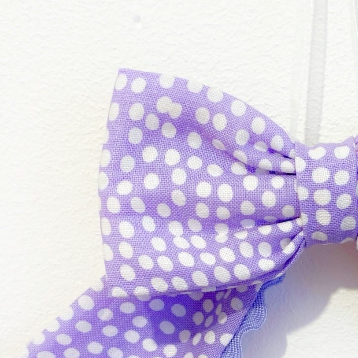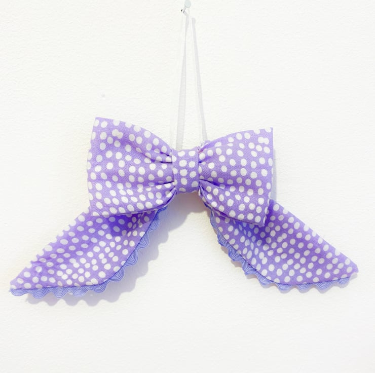 Add a touch of whimsical charm to your home with this beautiful, handcrafted decorative bow. Featuring a striking lilac and white spotty fabric and finished with a coordinating ric rac trim, it's the perfect little detail to brighten up any corner.