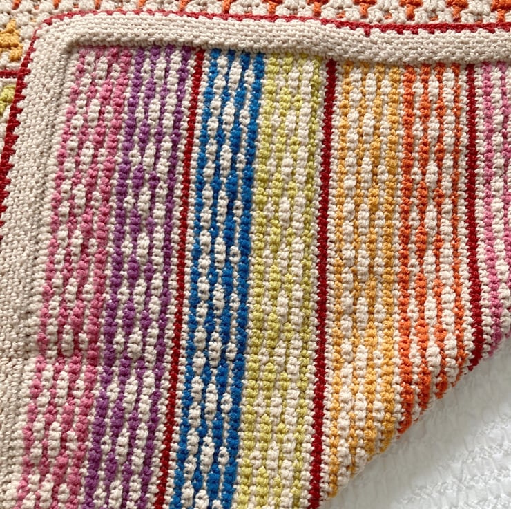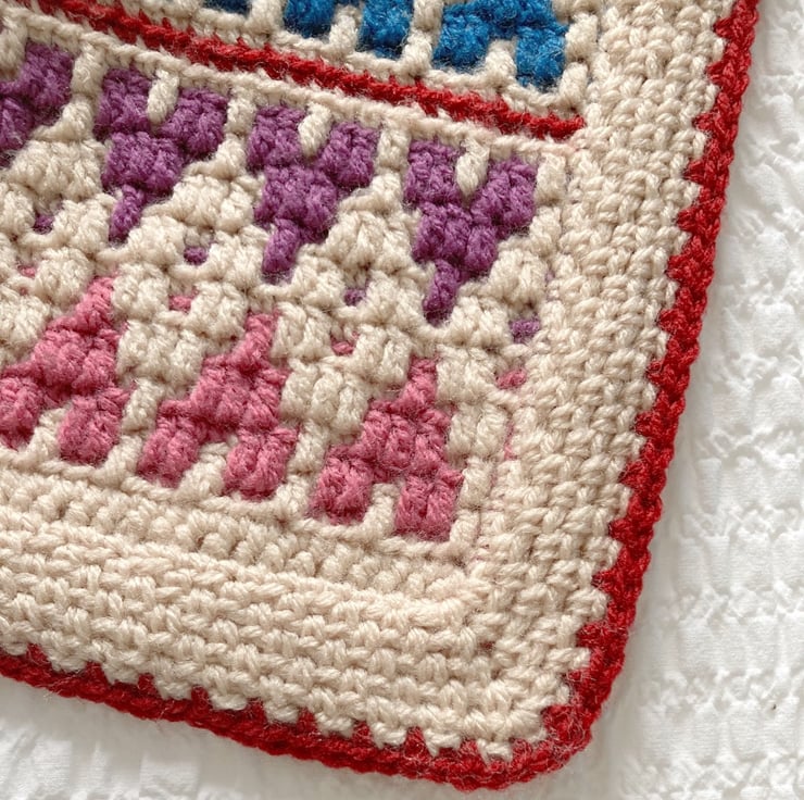 The Sleep Tight Little Bear Blanket is made using the mosaic crochet method, this way of crocheting means the back of the blanket is as pretty as the front.
