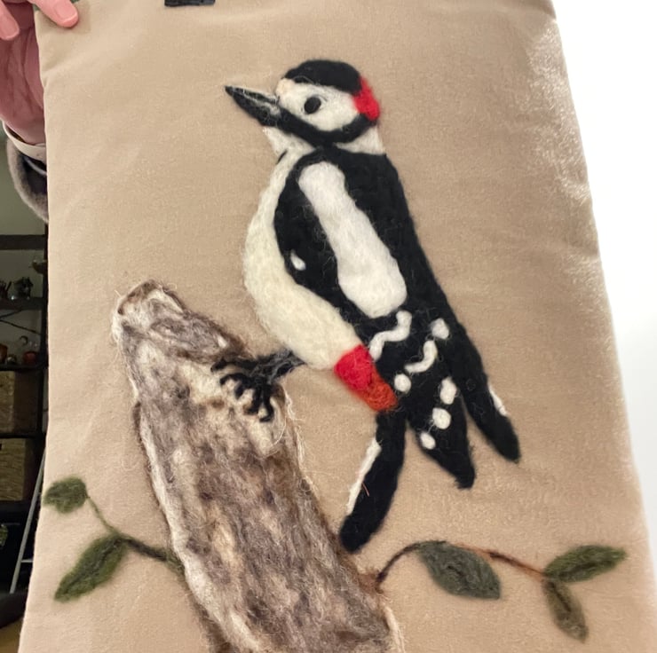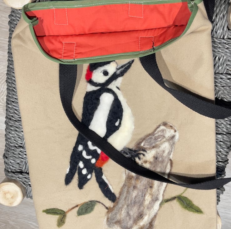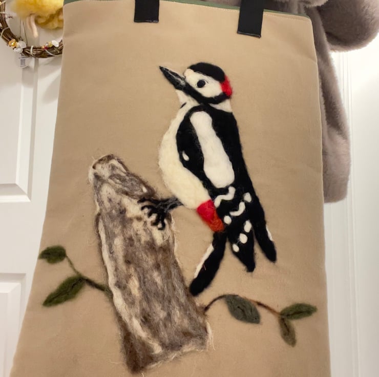 This handmade tote bag celebrates the lively spirit of woodland birds, bringing a unique and eye-catching touch to your daily routine.