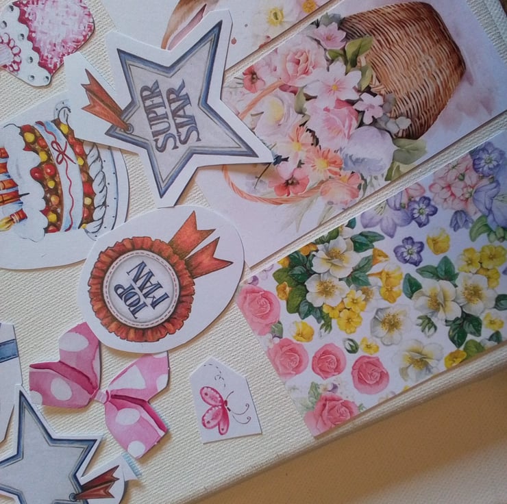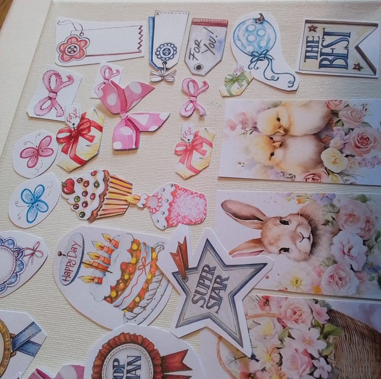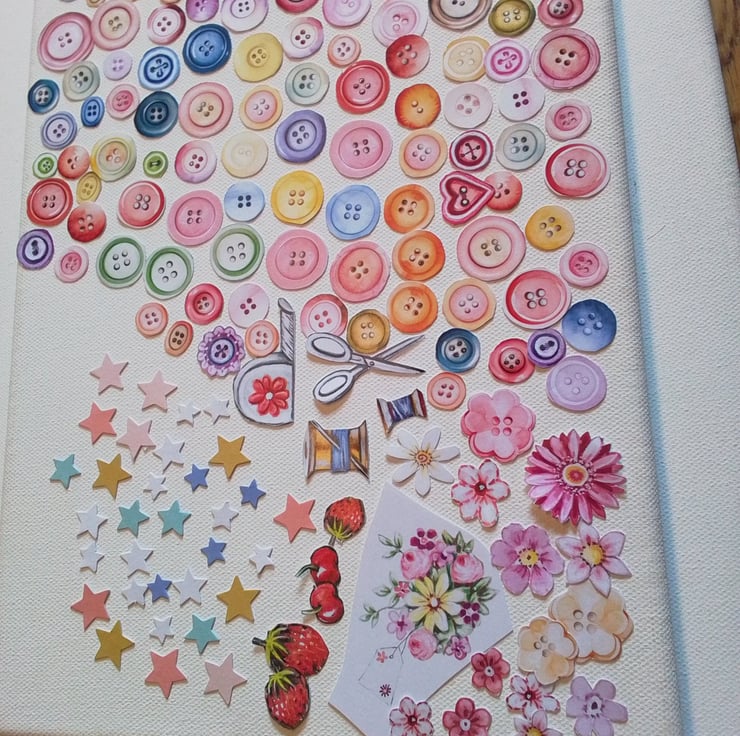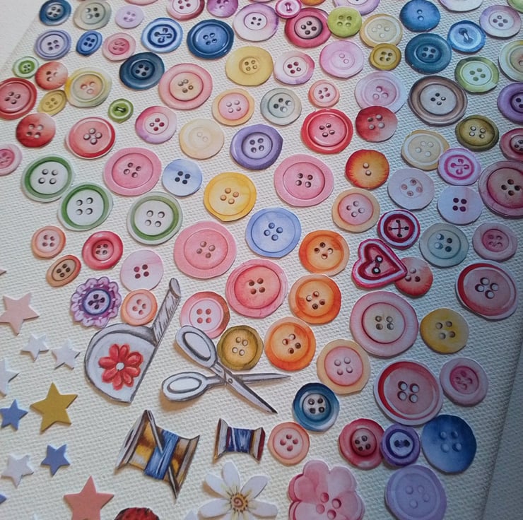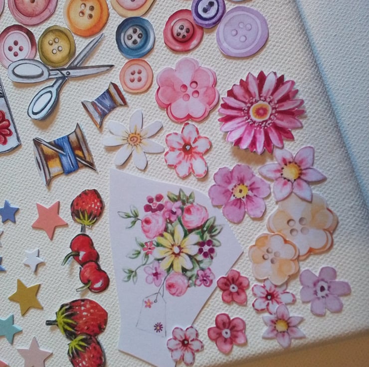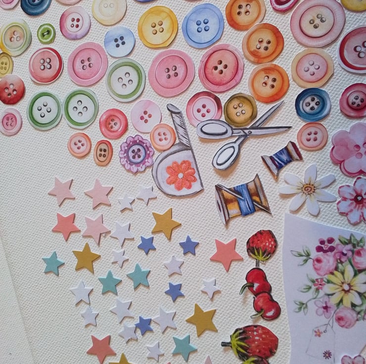 Buttons, flowers, stars and various other images su8table for scrapbooking and card making alike.