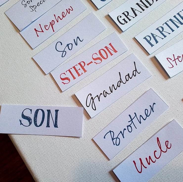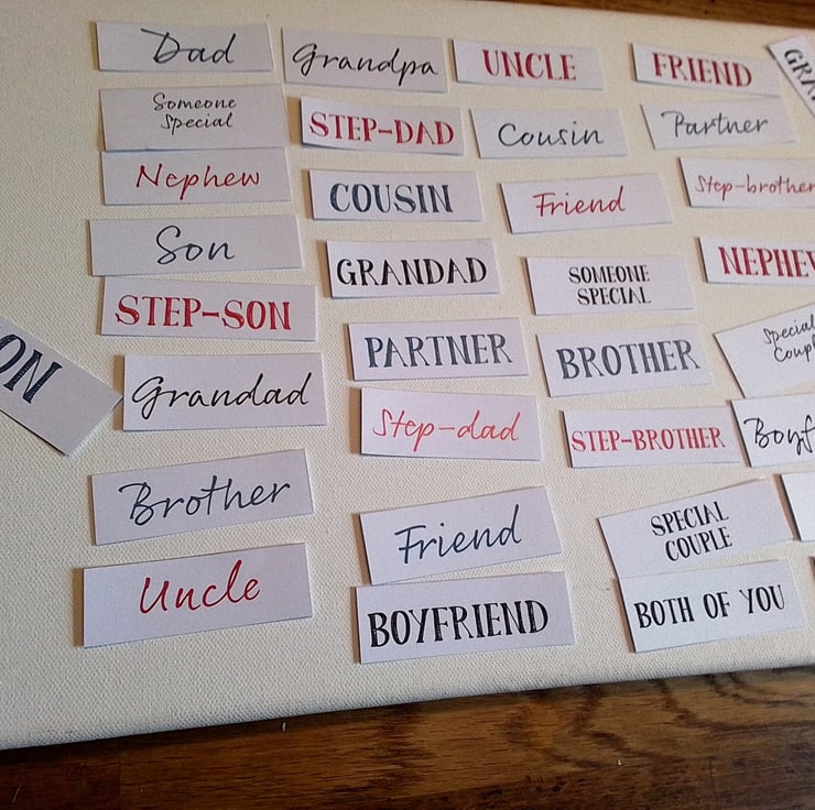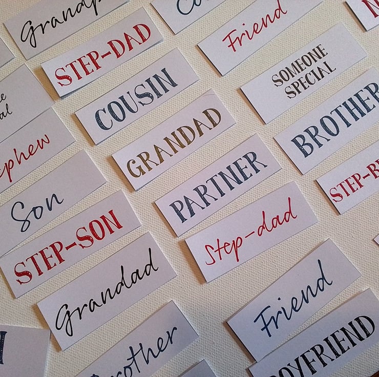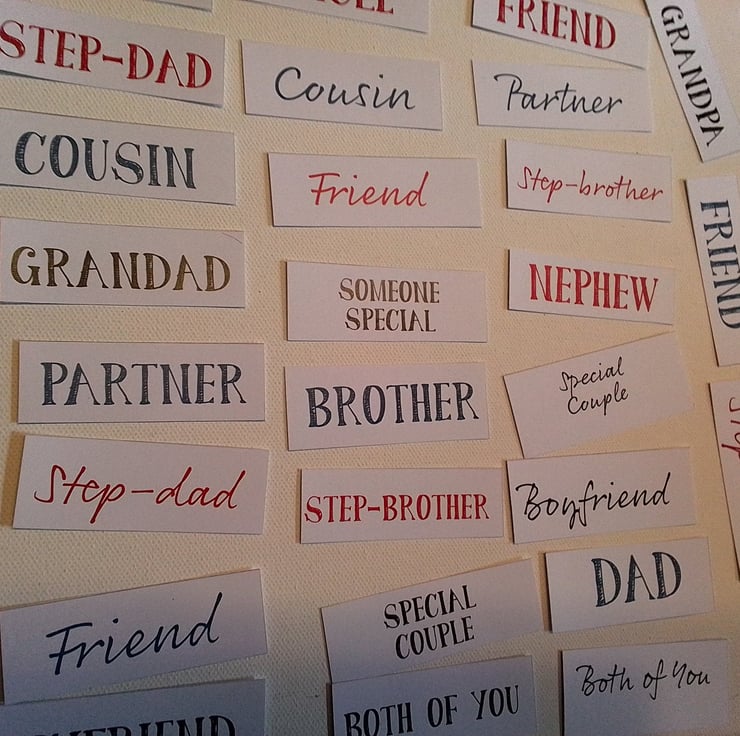 A selection of toppers such as brother, grandad for card making.