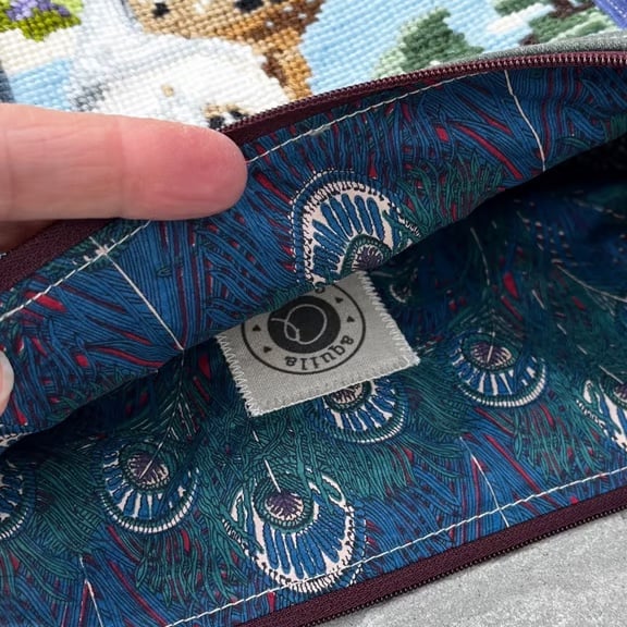 The zip bag is fully lined with liberty peacock feather cotton and has a layer of interfacing to give it a soft structure.