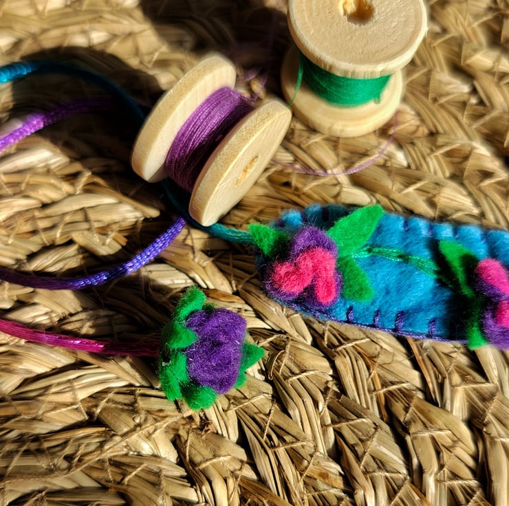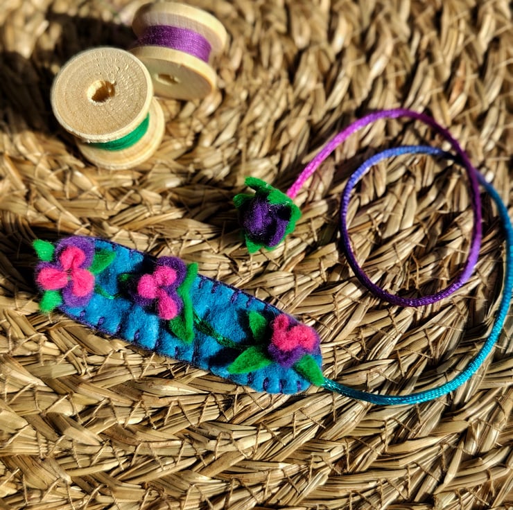 Delicate Floral Felt Bookmark – Crafted Pink & Purple Flowers, Gift for Readers