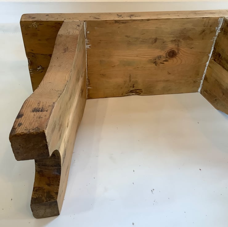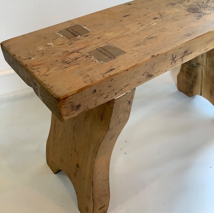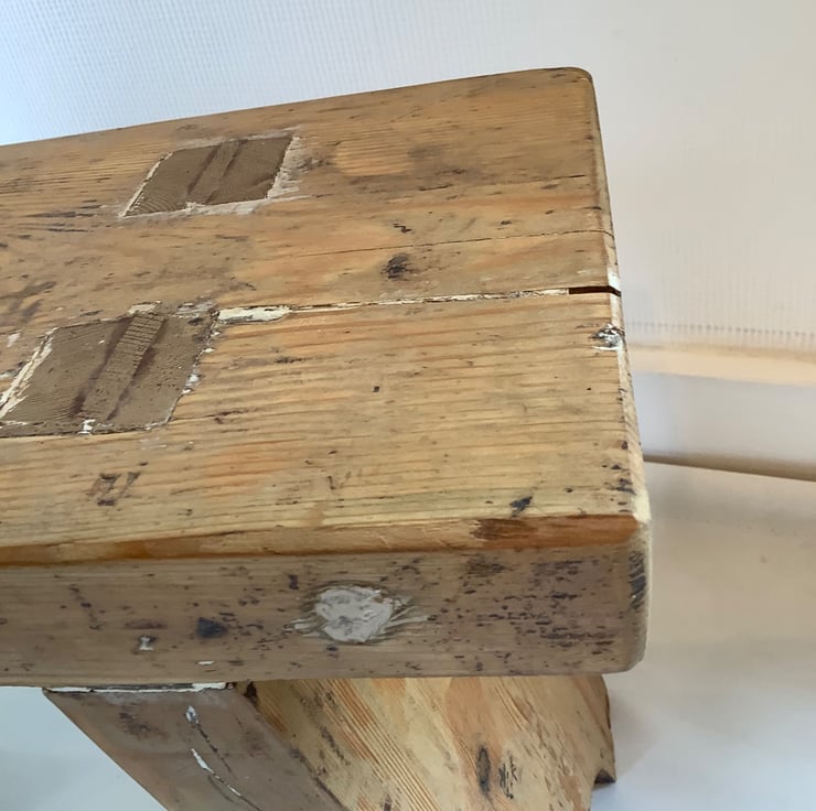 It is made from solid 60 year old reclaimed pine wood, hand made housing joints, glued and filled, then sanded and finished with layers of danish oil and beeswax to give it a water resistant durable finish.