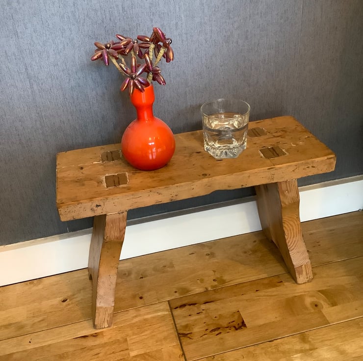 This great little solid pine wood vintage style rustic milking stool is ideal also as a little hallway or bedroom seat or maybe a side table.