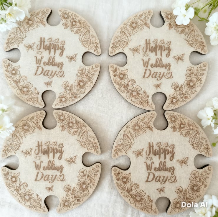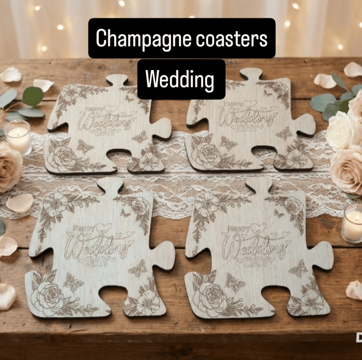 Wooden Wedding Coasters Jigsaw Puzzle Shape Personalised
