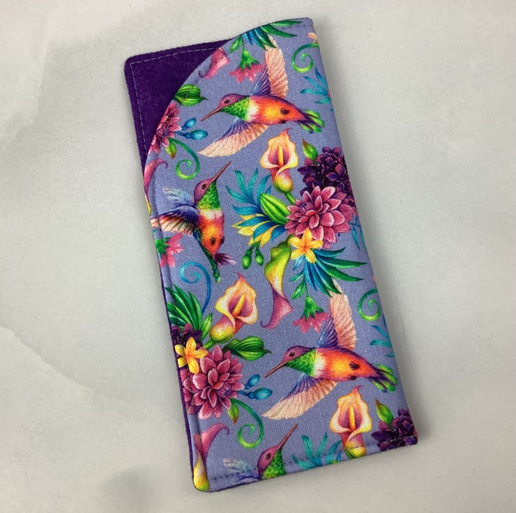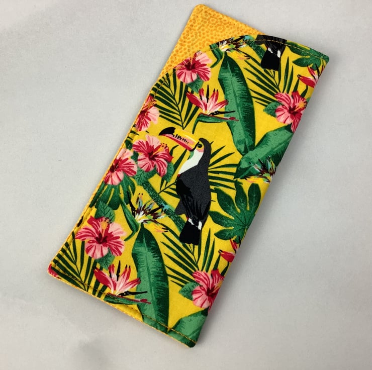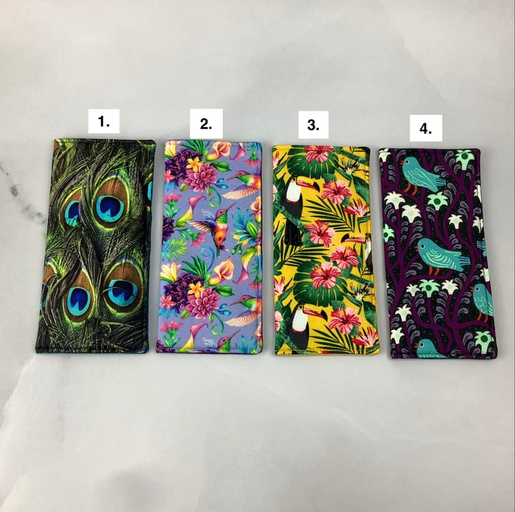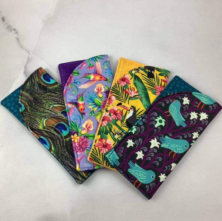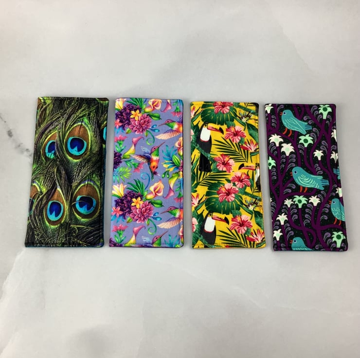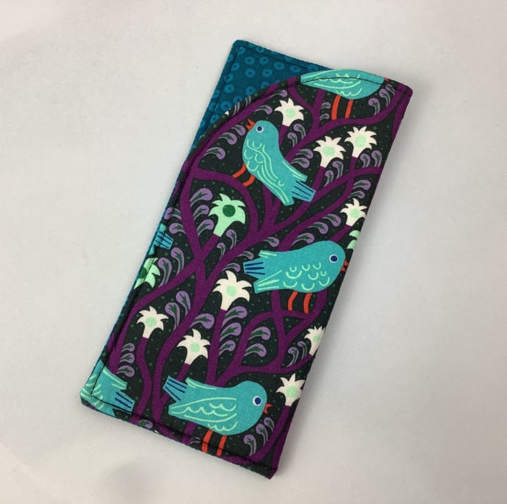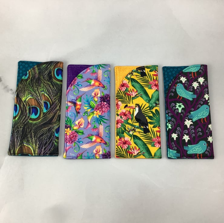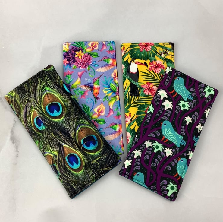 Handmade fabric glasses cases in a choice of fun bird themed cotton fabrics and lined in complimentary cotton fabrics. Lined with a dense interlining between the fabric layers for a padded feel. The size is approximately 17 x 8cm (6.7 x 3.2").