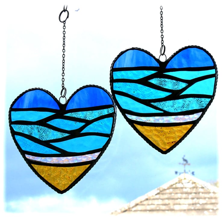 I also, as a separate listing, have 2 more Sea Hearts with sunset coloured sky instead of daytime blue. You can see these in the last photo.