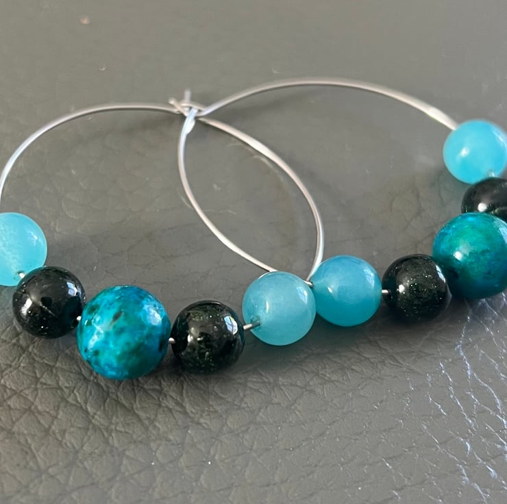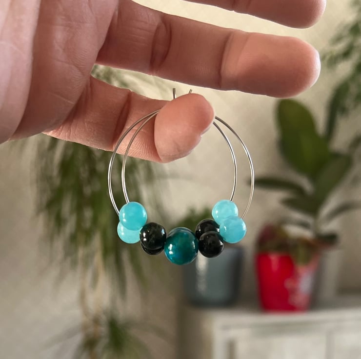 Elegant handmade hoop earrings featuring carefully selected natural gemstones. Each pair is crafted by hand, making every piece unique. Lightweight and comfortable, these earrings add a subtle, natural touch to both everyday outfits and special occasions. Perfect as a thoughtful gift or a timeless addition to your jewellery collection.