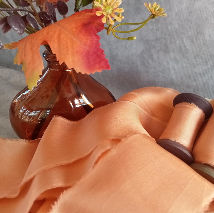 Hand Dyed Silk Ribbon: Deep Orange Bridal Bouquet Ribbon, Cake Decor, Stationery