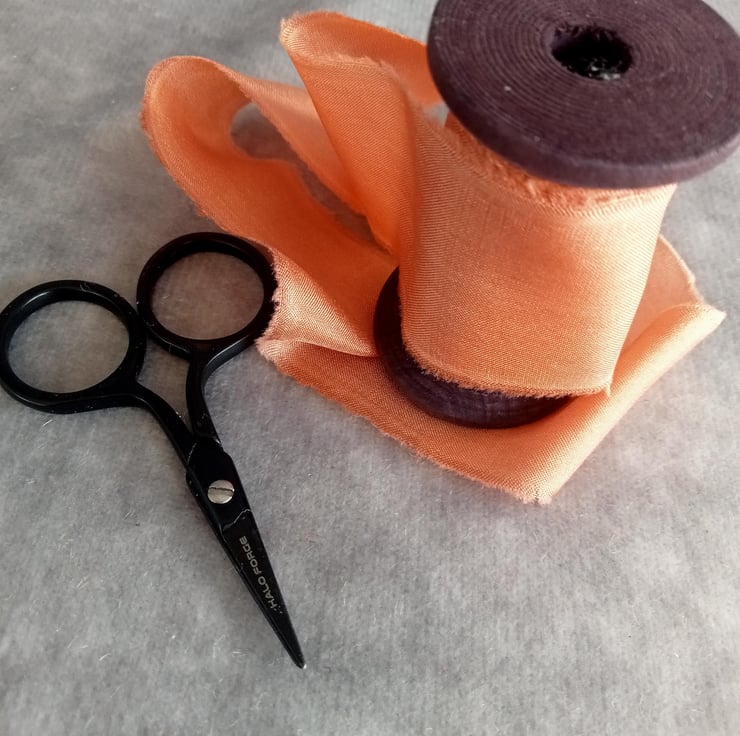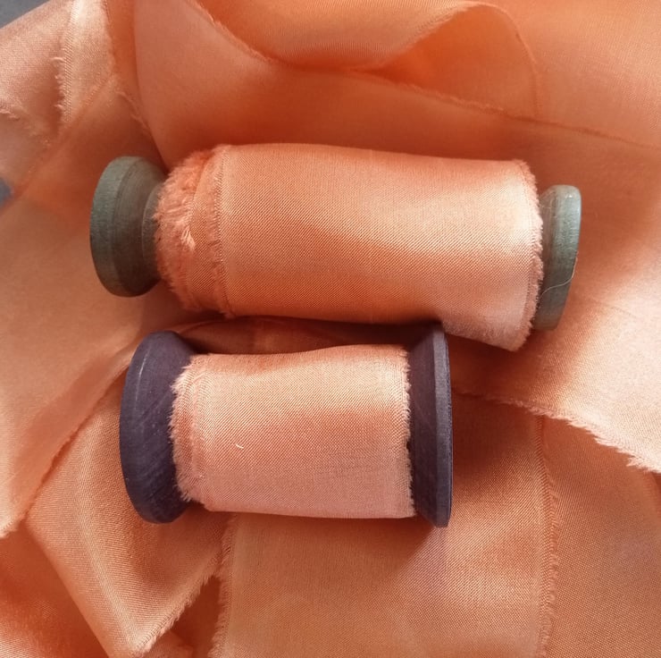 The hand dying process can leave gentle watermarking and marbling of colour adding to the unique nature of each ribbon.