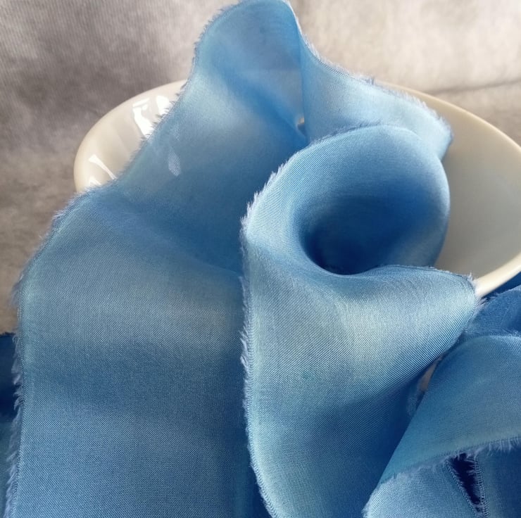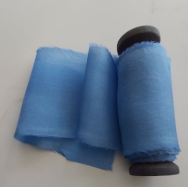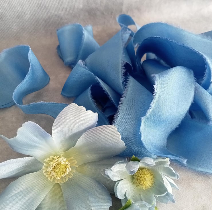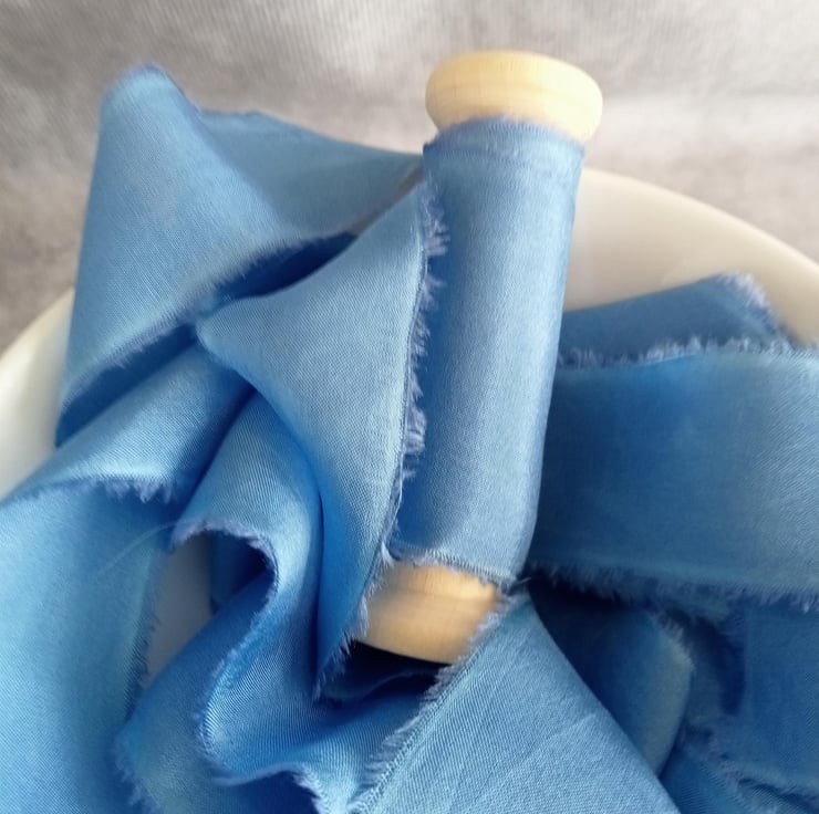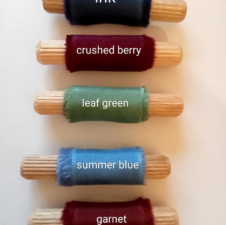 The hand dying process can leave gentle watermarking and marbling of colour adding to the unique nature of each ribbon.
