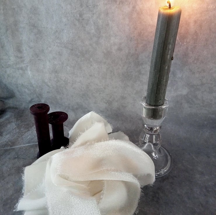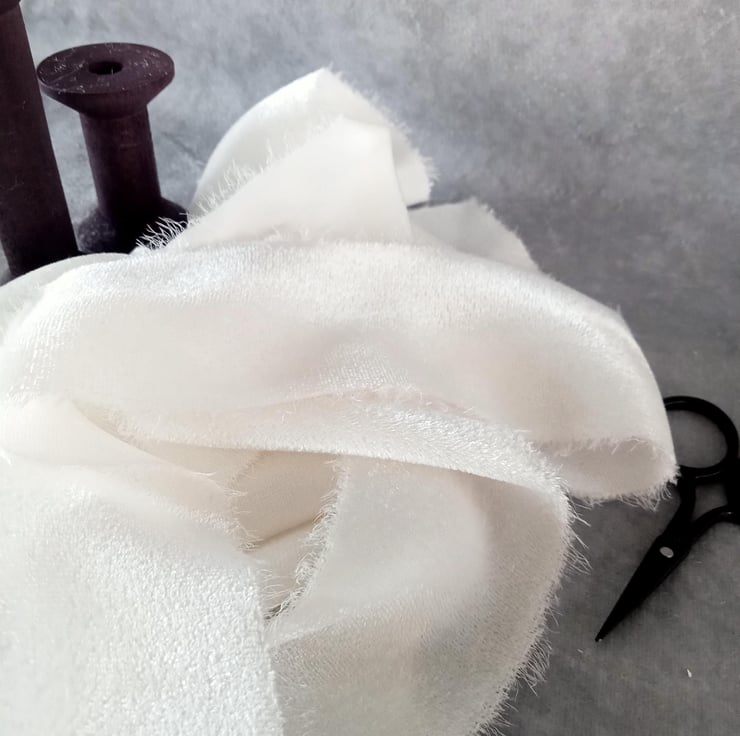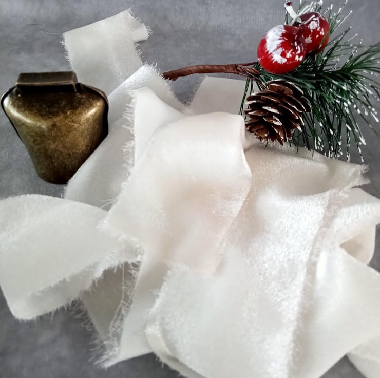 This ribbon is undyed and unbleached, resulting in a beautifully soft, creamy white that avoids the harshness of a bright white. It provides beautiful, subtle texture and an authentic, sophisticated weight, perfect for your most treasured details.