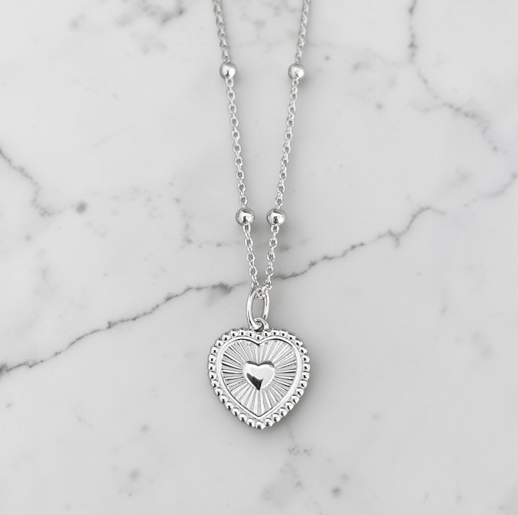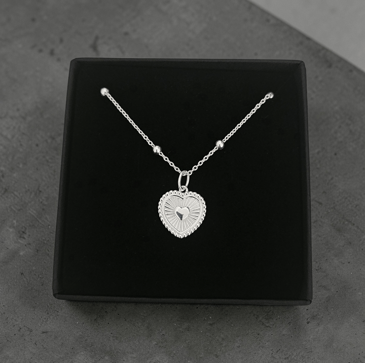 A perfect addition to any jewellery collection. A stunning heart rays charm Satellite Necklace that has style and beautifully designed and crafted with top quality Sterling silver.