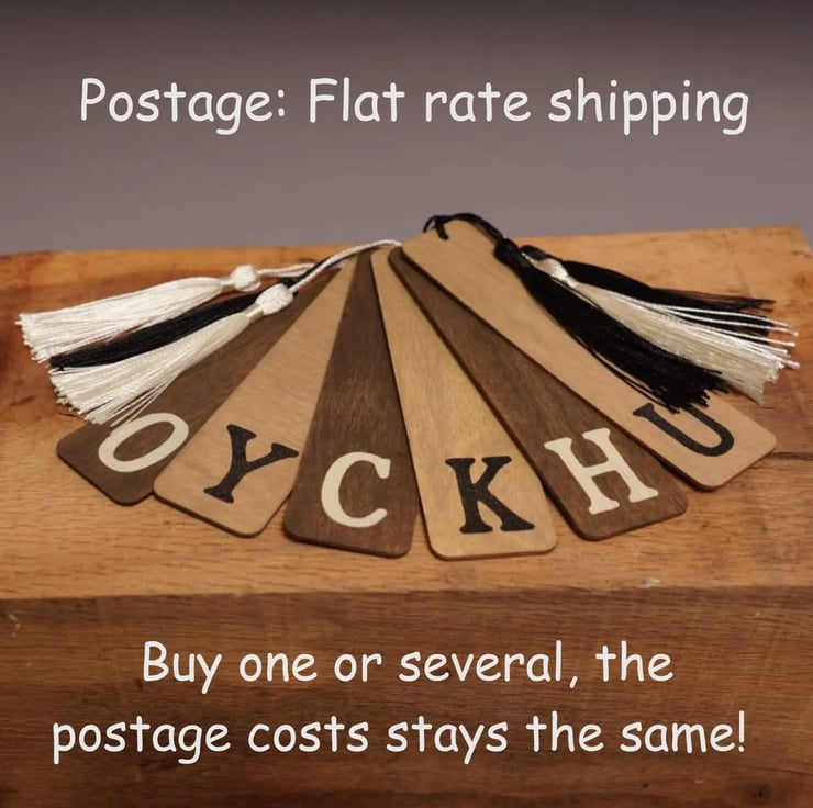 Please enter 1 letter per bookmark (A-Z only). If you are ordering multiple bookmarks, separate each letter with a space (e.g. A H I D). Double check spelling before placing your order.