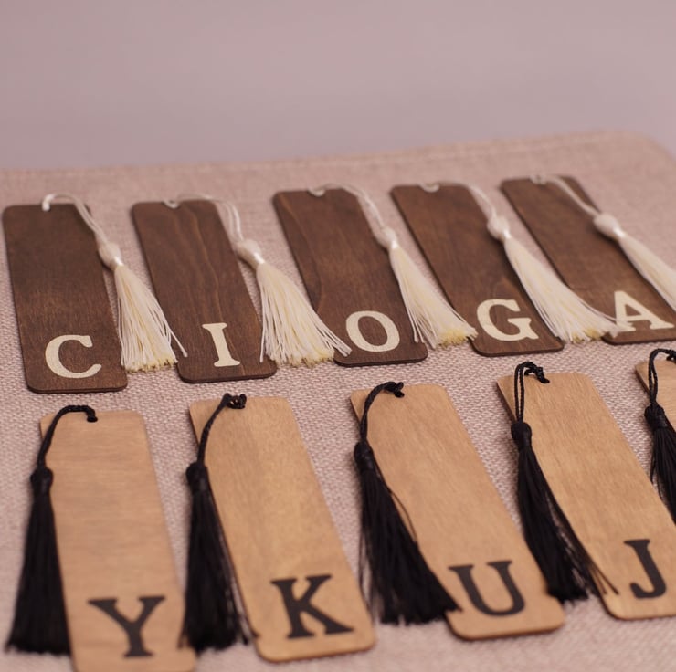 Add a simple stylish touch to your reading with these handmade wooden bookmarks, each customised with your chosen initial. Designed with a rustic, minimalist look and finished with a soft tassel, they make a perfect little gift for any book lover.