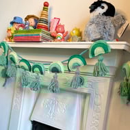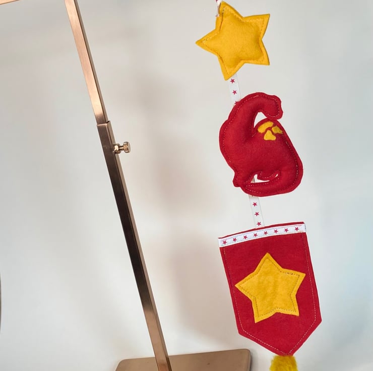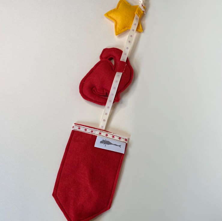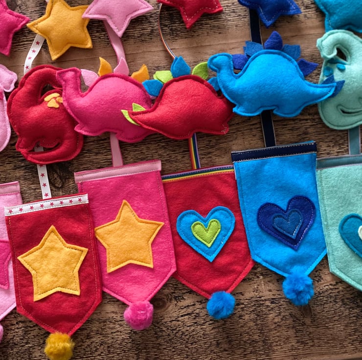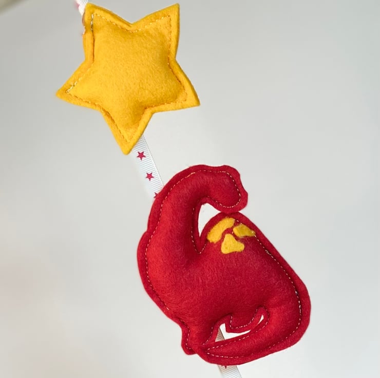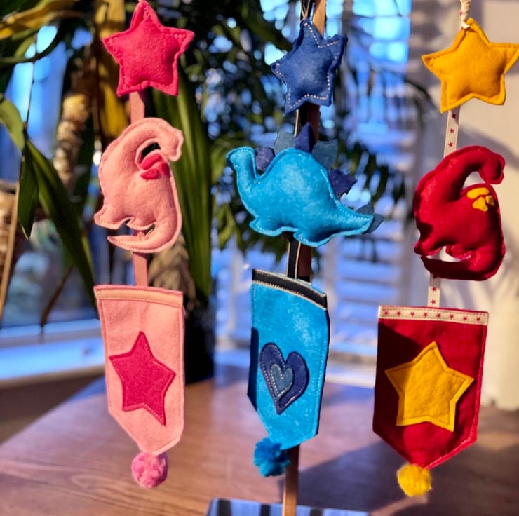 Felt hanging - with star, Diplodocus dinosaur and spearhead flag with pompom.