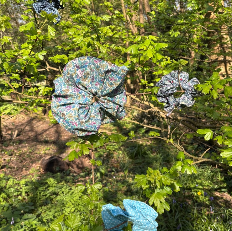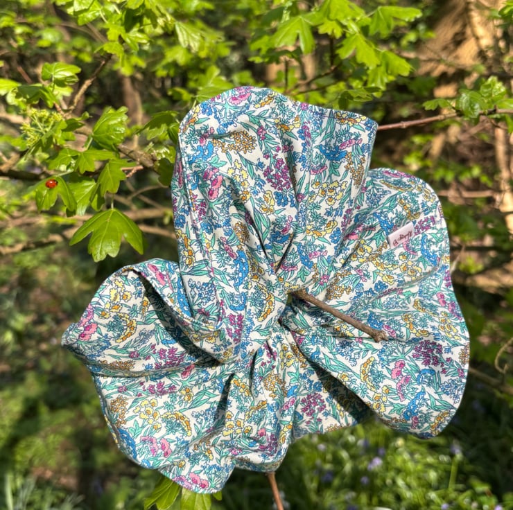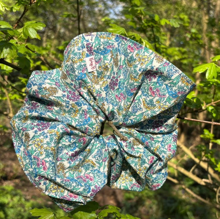 Statement handcrafted scrunchie in gorgeous floral cotton. This scrunchie doesn't want to fade into the background, she demands to be seen in all her cottage core fantasy!
