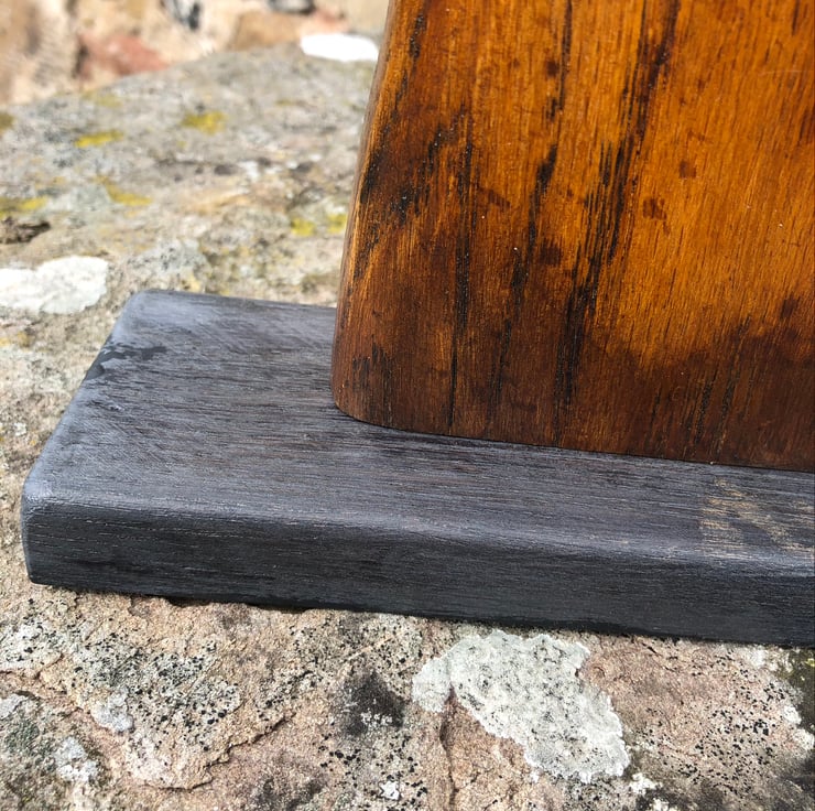 The base is of reclaimed Elm and it resembles slate.