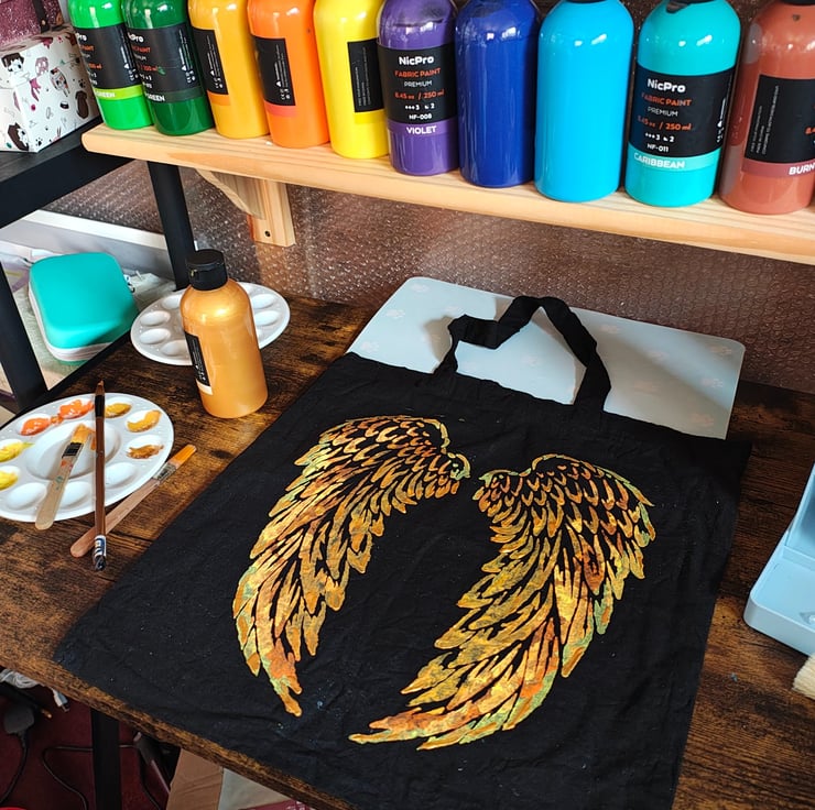 Cotton tote bag with a great design hand painted on the front using fabric paints. Great as a gift bag or as a gift for someone special.