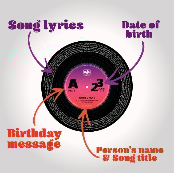 Aa part of my 'Labels & Lyrics' collection this Art Print brings the bold, nostalgic look of a vintage vinyl label into a personalised A4 artwork made for celebrating a milestone birthday.