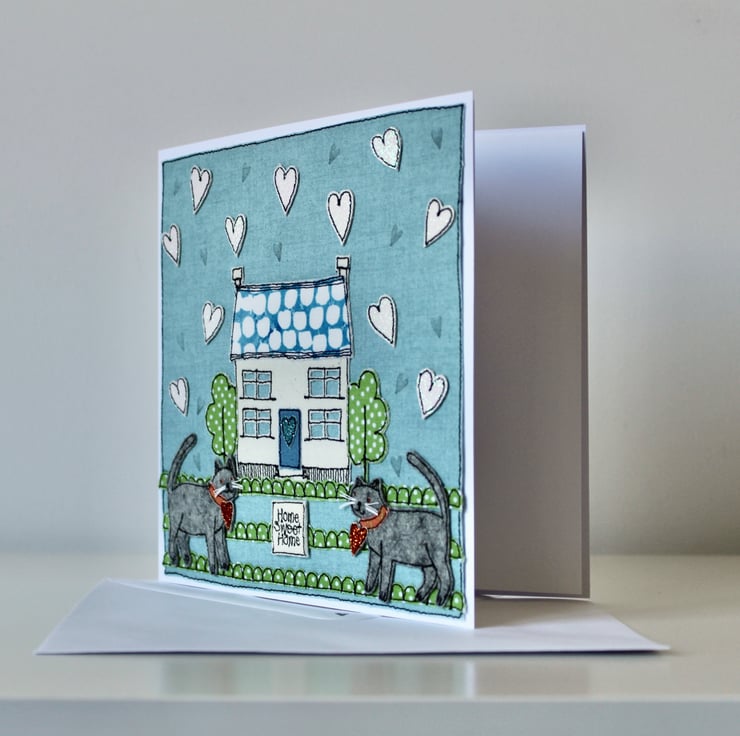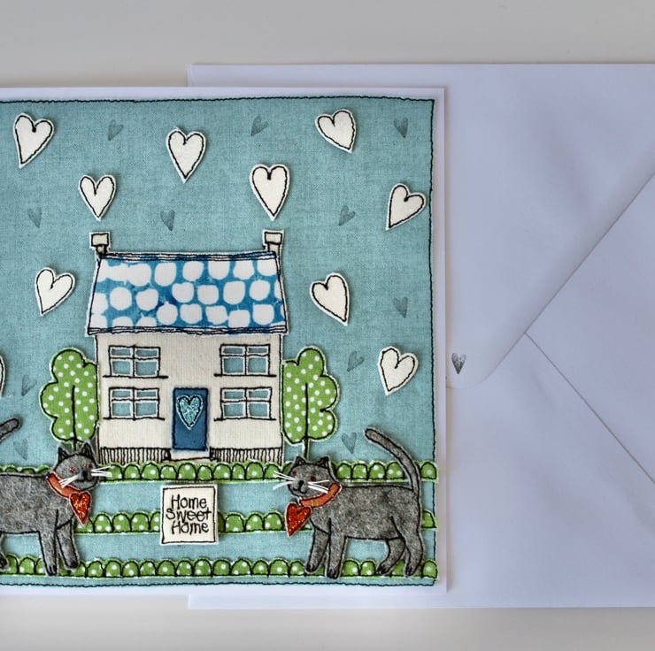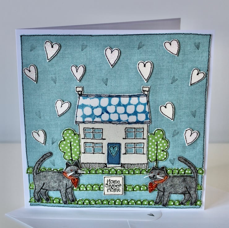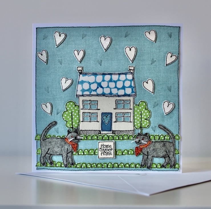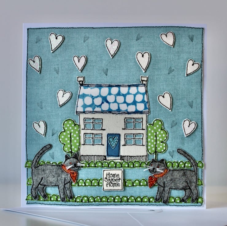 This handmade card has been sewn by me and my sewing machine, using cotton cloth, glitter cloth and metallic fabric; making it totally unique.
