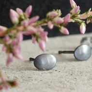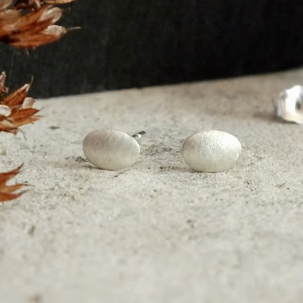 These bright oval studs are made from sterling silver and gently domed to capture the light. Their brushed finish creates a soft, satin surface, diffusing the light for a muted effect. The minimal form and gentle curves make them a balanced and refined everyday piece. Minimal and refined, they are thoughtfully crafted to bring understated elegance to daily wear.