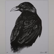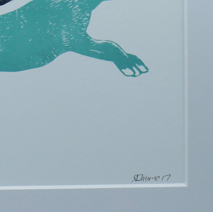 colour inks onto the linoblock. All prints are mounted with acid free card, ready to frame. This print is also available in light warm brown.