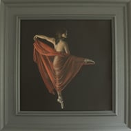 The shape the hare created is so special that I could carve, print, or paint it all week long and never get sick of it. I paint a lot of ballet paintings and a lot of what attracts me to the ballet is present in this beautiful animal. This linoprint was created over three days, and two different blocks. This means that the hares do move around a little between prints.