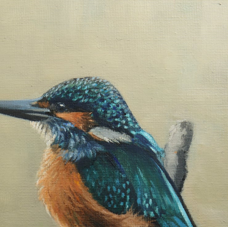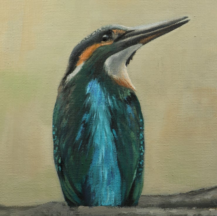 This piece celebrates the stunning beauty of the kingfisher, whose striking metallic blue and vibrant orange plumage makes it one of our most captivating birds. Their swift, swooping flight and remarkable precision as they dive for fish make them extraordinary hunters. With sharp focus and perfect timing, they wait patiently on overhanging branches above the water before striking with incredible accuracy.