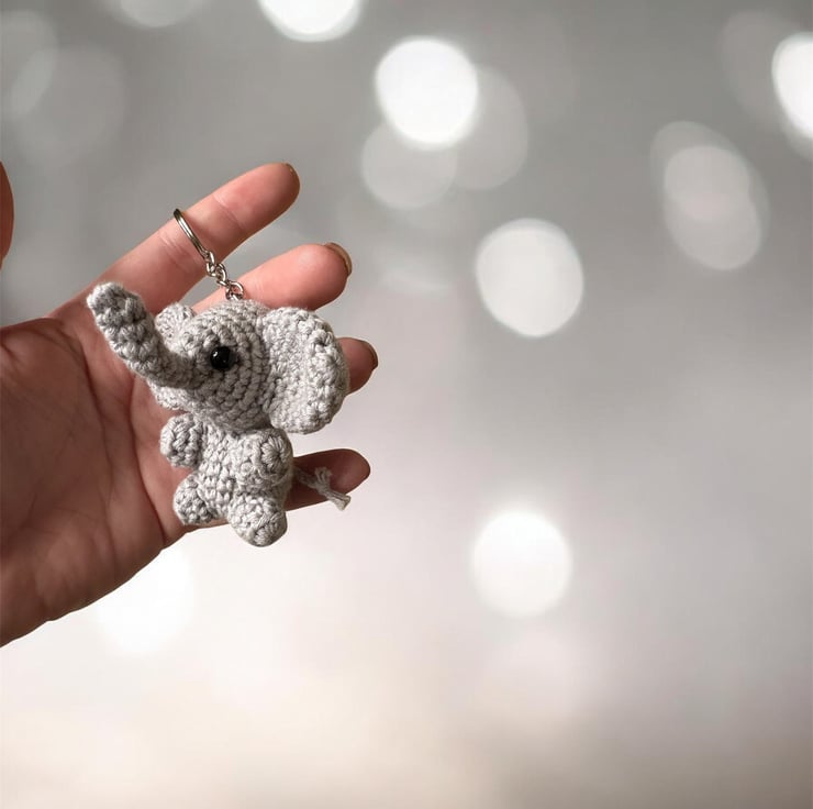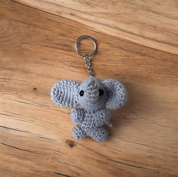 Handmade Crochet Elephant Keychain Amigurumi Bag Charm, Soft Plush Accessory