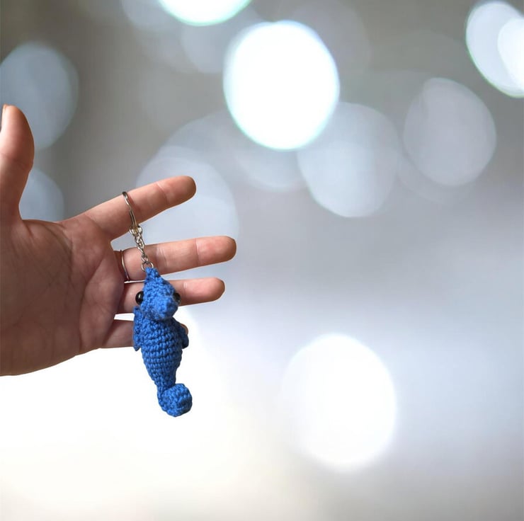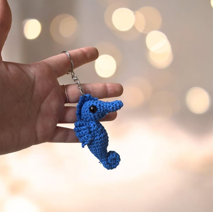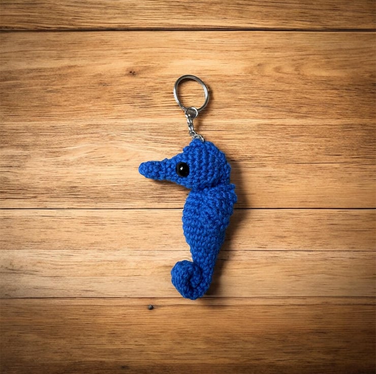 Handmade Crochet Seahorse Keychain Amigurumi Bag Charm, Soft Plush Accessory