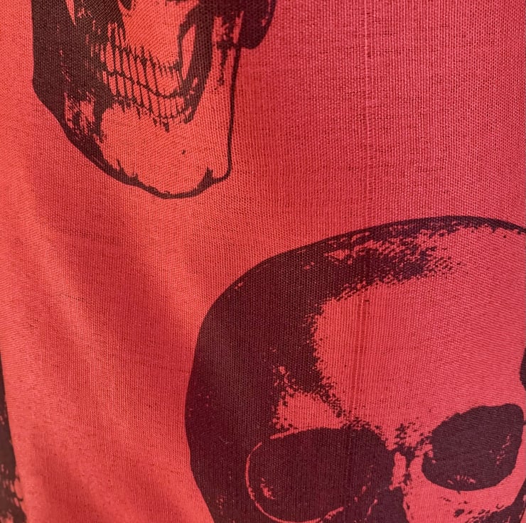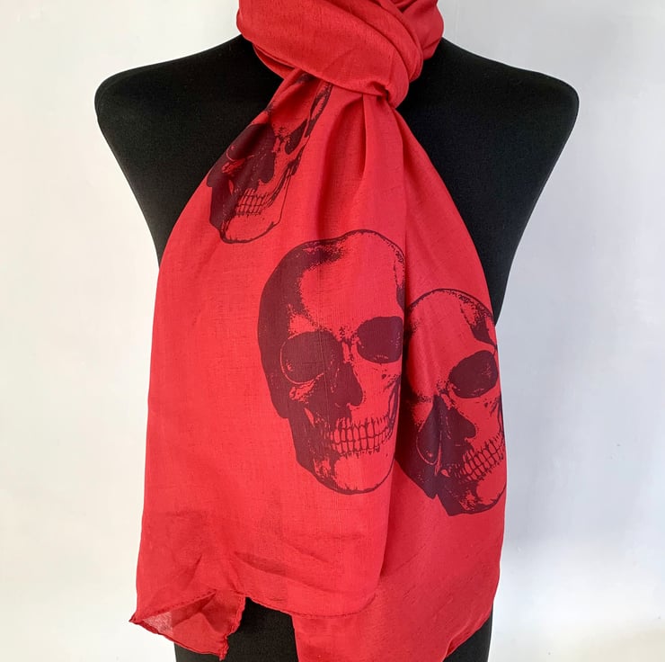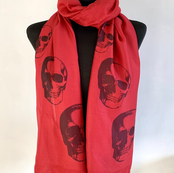 This long Skulls scarf has been hand printed to create a Gothic Punk style gift for her.