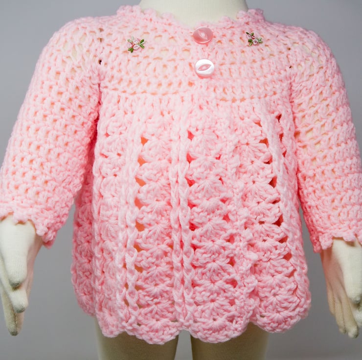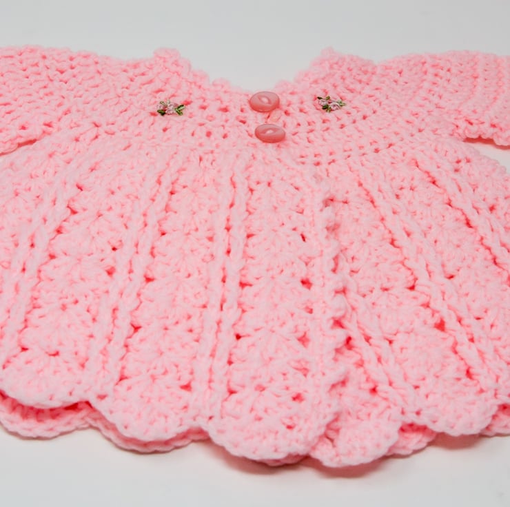 This beautiful coat for baby is fastened with 2 buttons and finished with embroidered flowers.