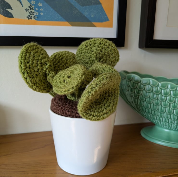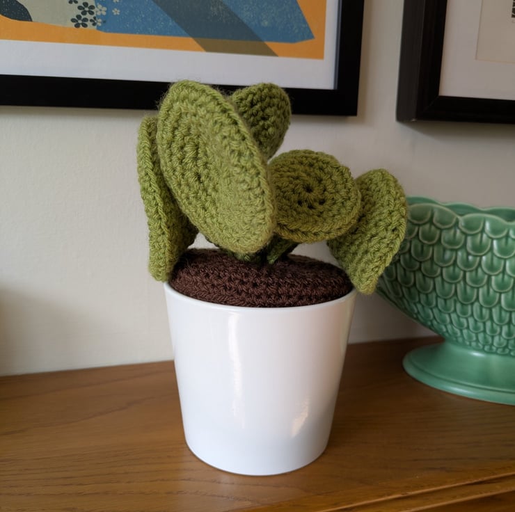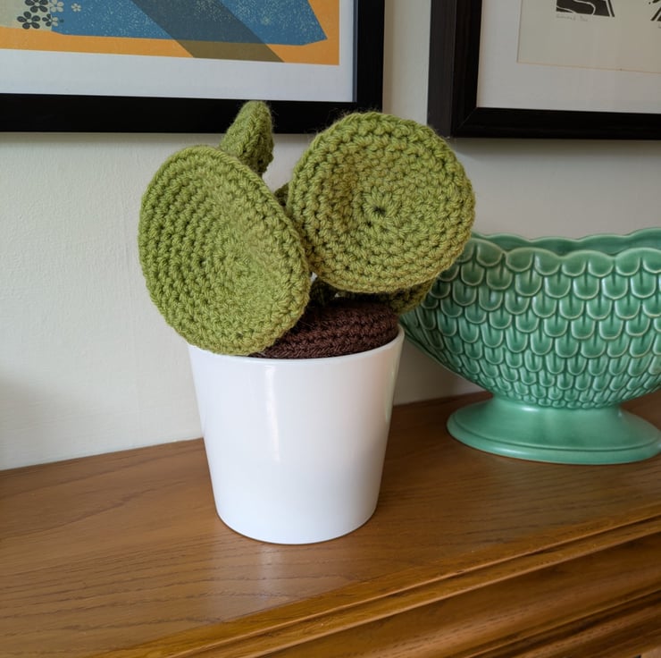 This handmade crochet Chinese Money Plant is designed to mimic the look of a real succulent, bringing cosy, calming vibes to any room. Nestled in a neat plant pot, it's a unique piece that blends handmade craft with quirky, upcycled style.