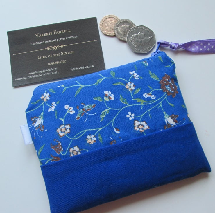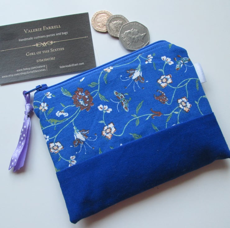 Pretty little printed fabric coin purse, perfect for your coins, notes and cards