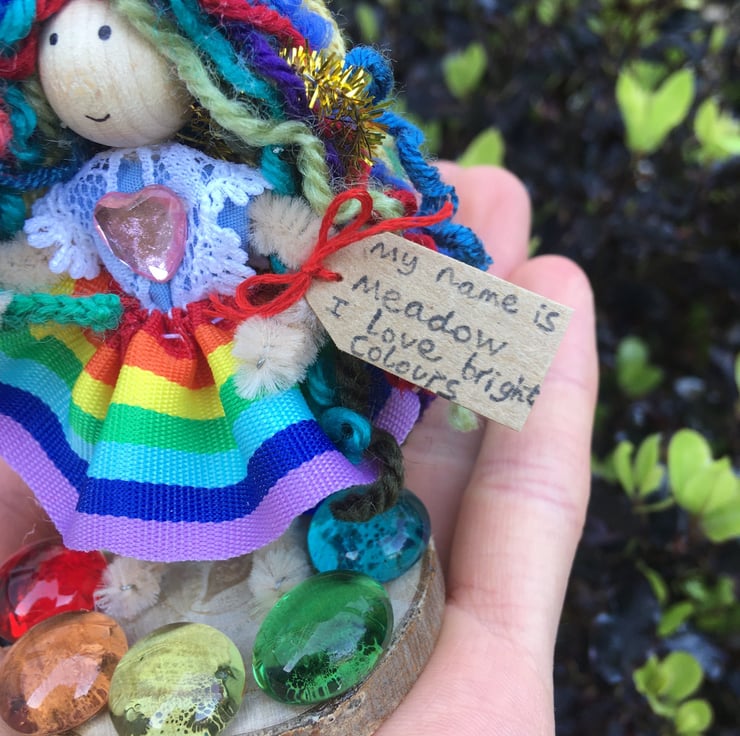 She has a tag which states her name and something that she loves. She is called Meadow, and she loves bright colours.