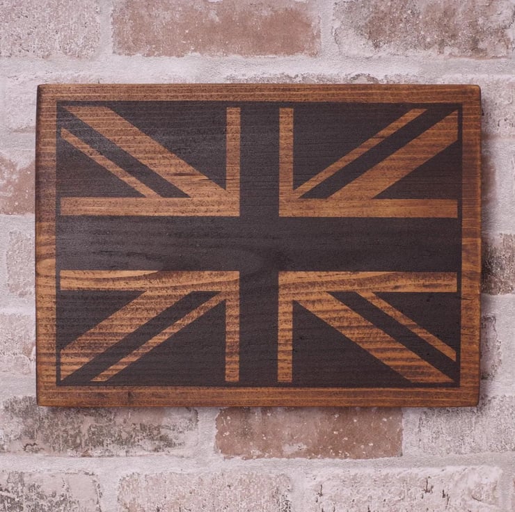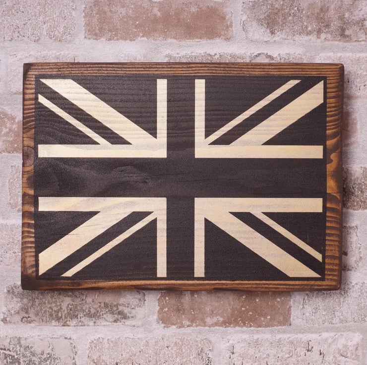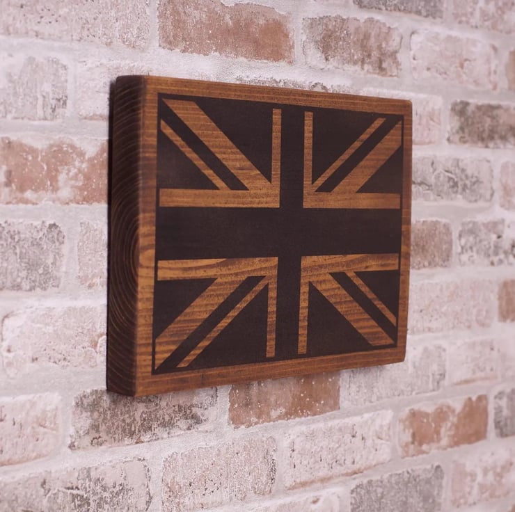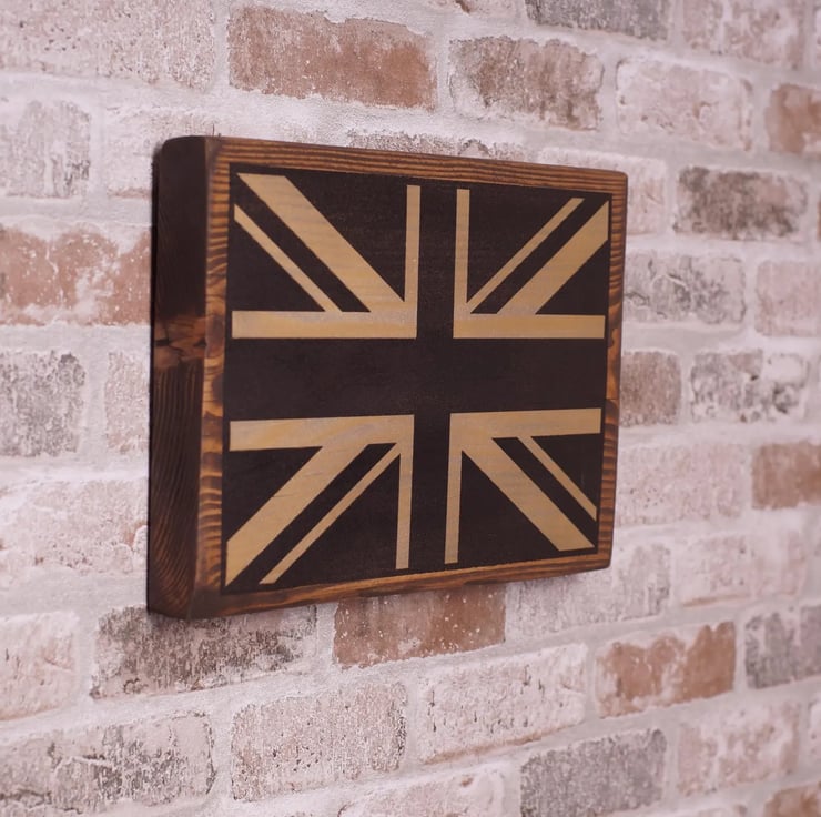 Bring British heritage and warmth to your space with this handmade union jack wall art, crafted from reclaimed wood and finished in a rustic stain. Each piece highlights the natural grain and character marks of salvaged timber, creating a unique British flag plaque that feels timeless in modern, farmhouse, or industrial interiors.