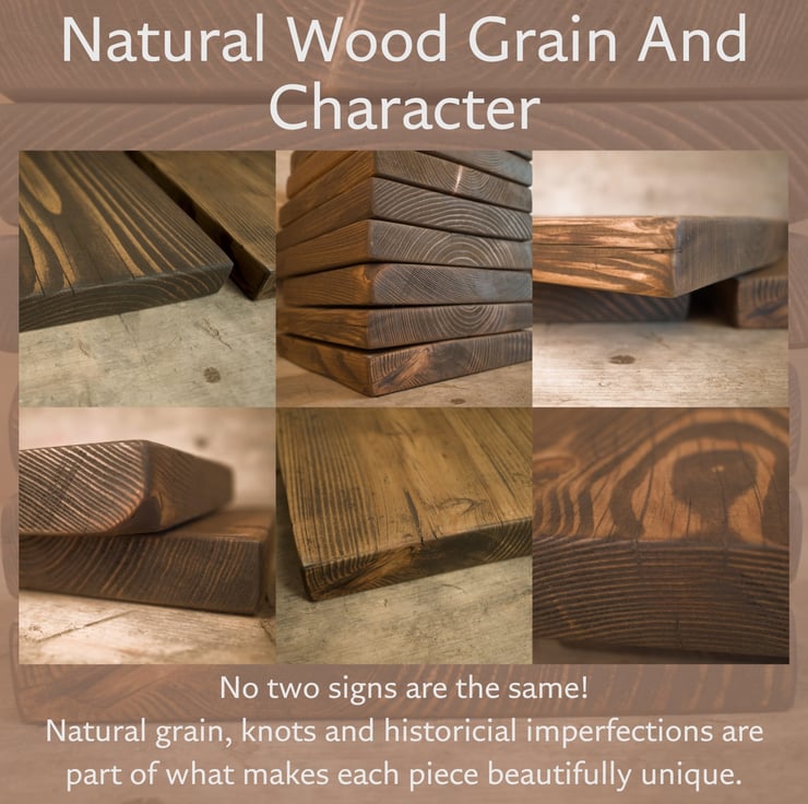 Due to the reclaimed nature of the wood, natural grain patterns, knots, and imperfections due to wear and tear of it's previous life may be present. These features add to the authentic rustic character of the piece. Colours may vary slightly due to lighting, wood absorption and screen settings.