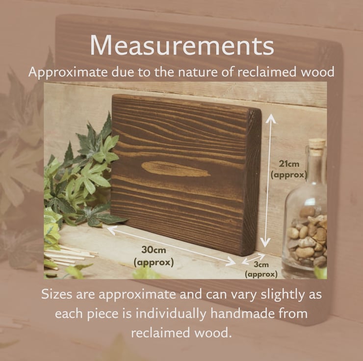 Measurements - Sizes are approximate and can vary slightly as each piece is individually handmade from reclaimed wood.