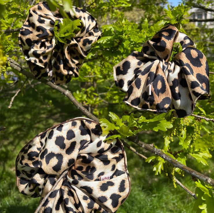 Statement handcrafted scrunchie in timeless leopard print! This scrunchie doesn't want to fade into the background, she demands to be seen!