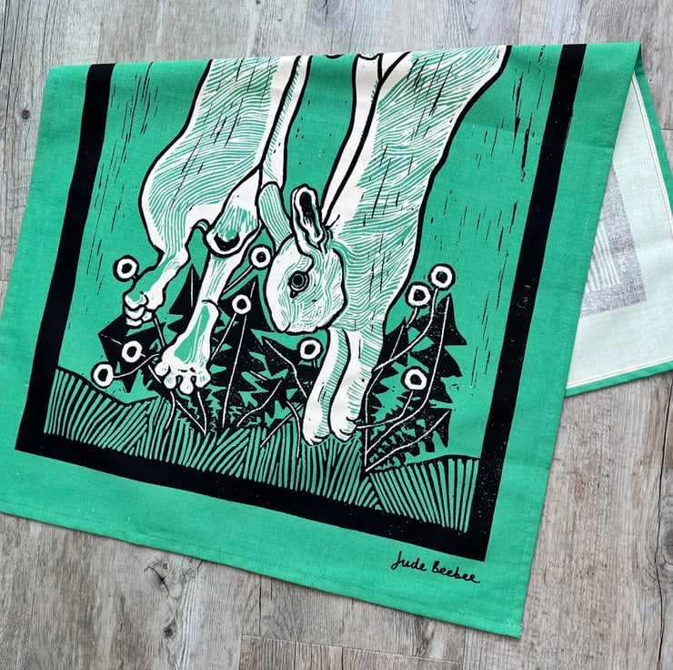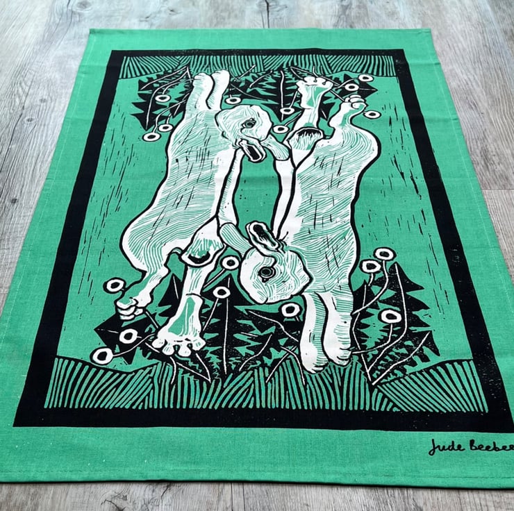 Original design from a handmade, two colour Lino cut by Jude Beebee.