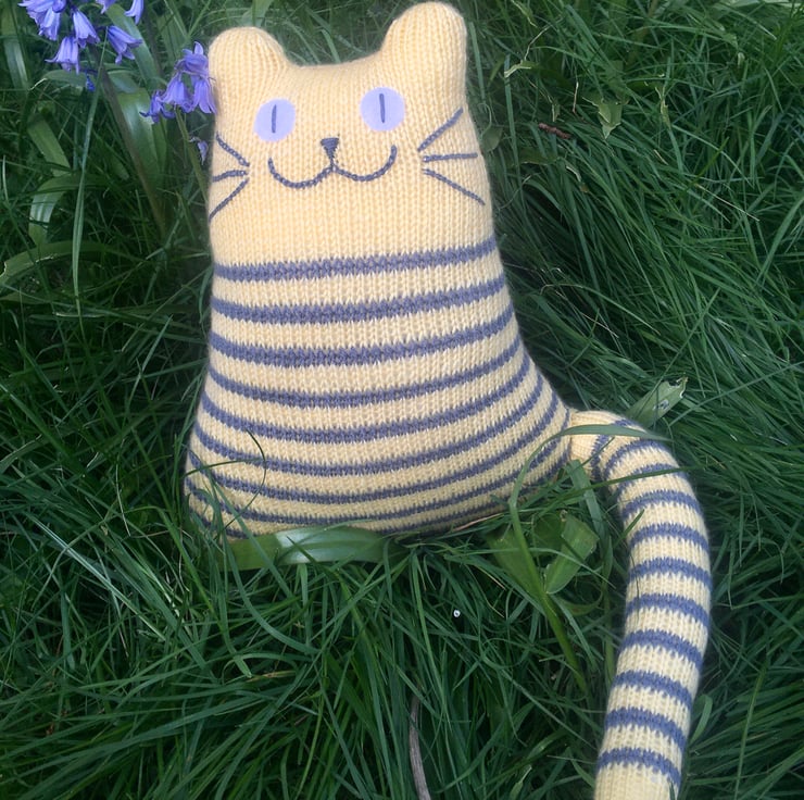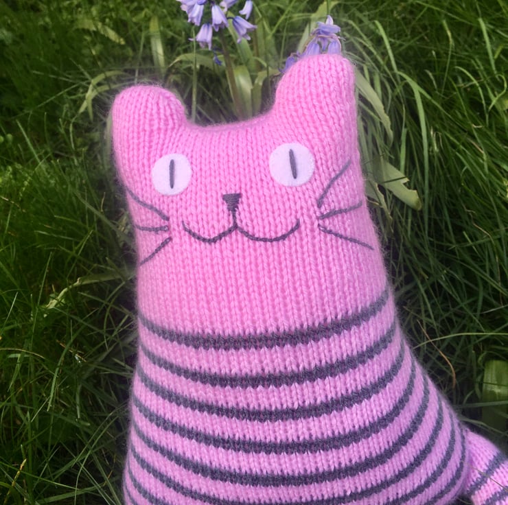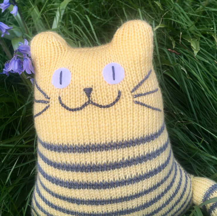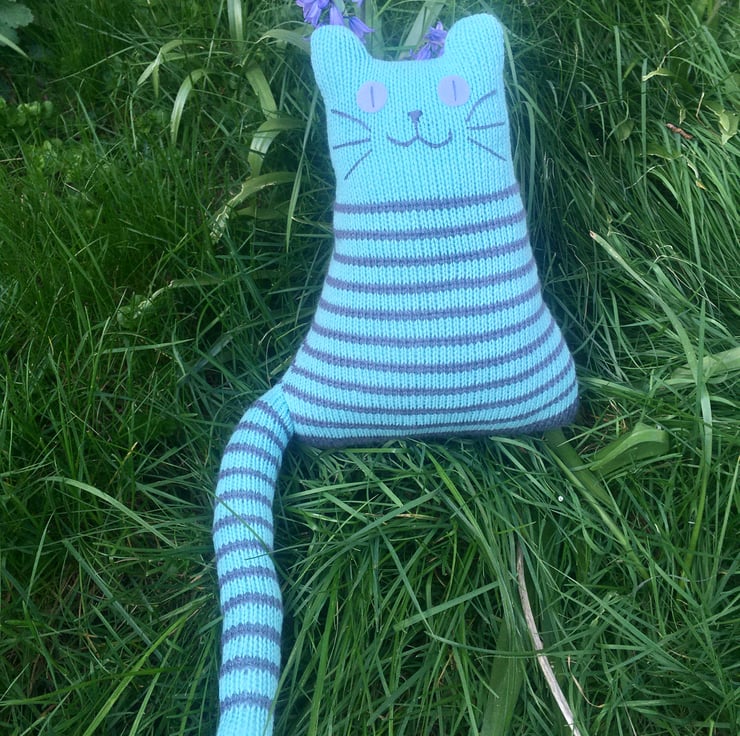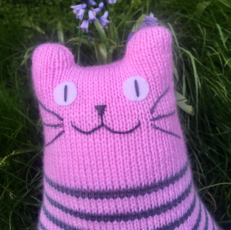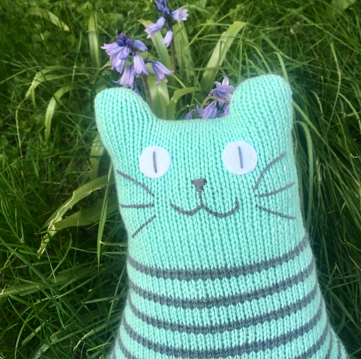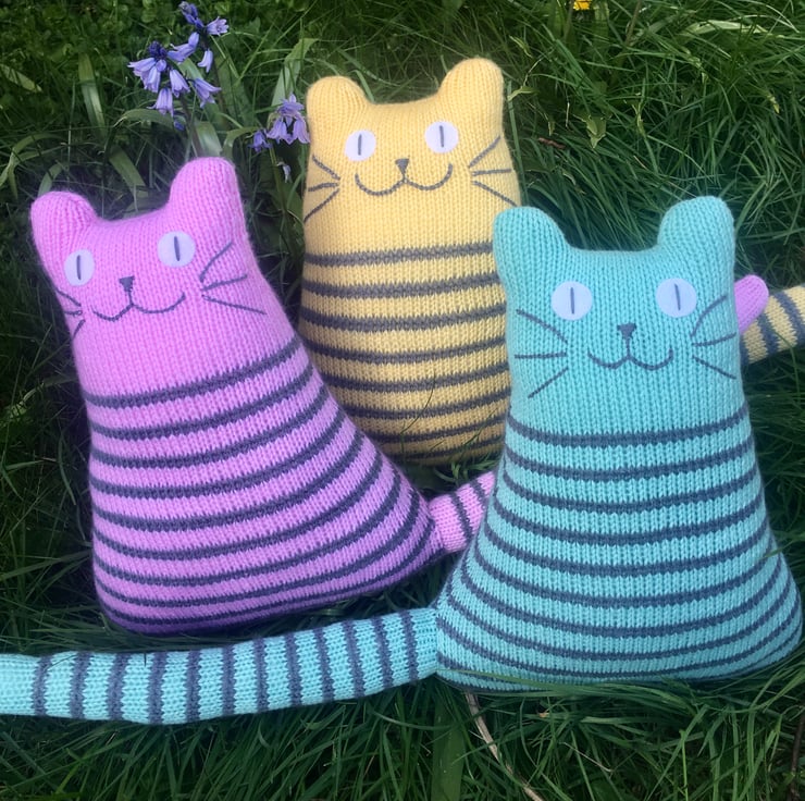Our cats are hand knitted from soft DK acrylic yarn & is filled with safe soft toy stuffing. The whiskers and face are made from cotton thread and eyes are made from felt.