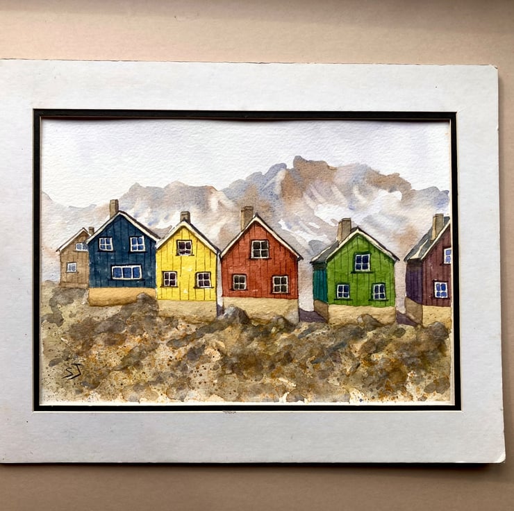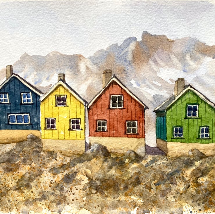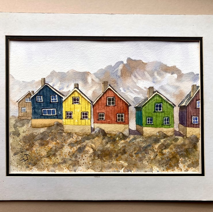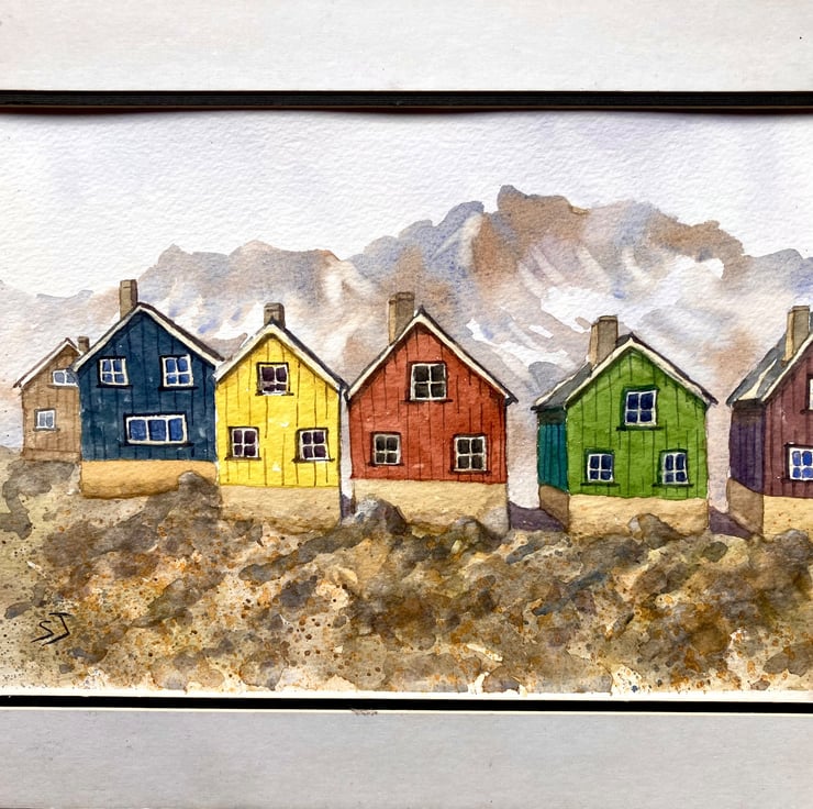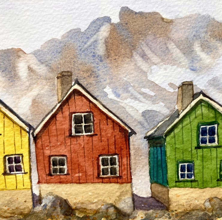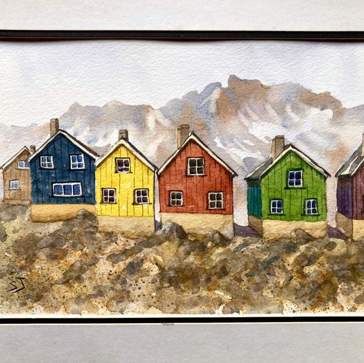 The colourful Nordic style chalets are a great contrast to the volcanic landscape.