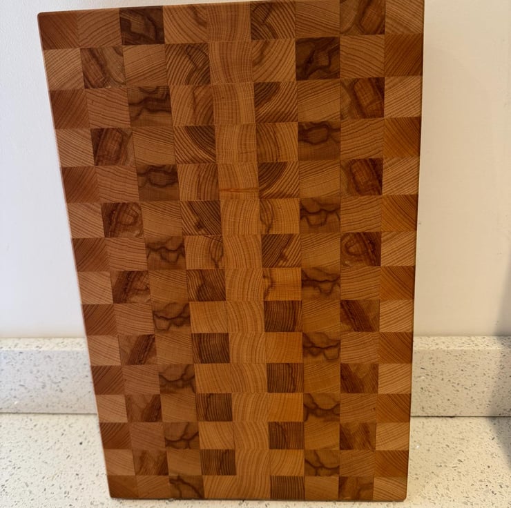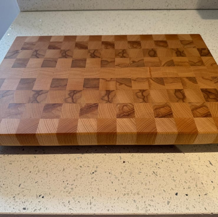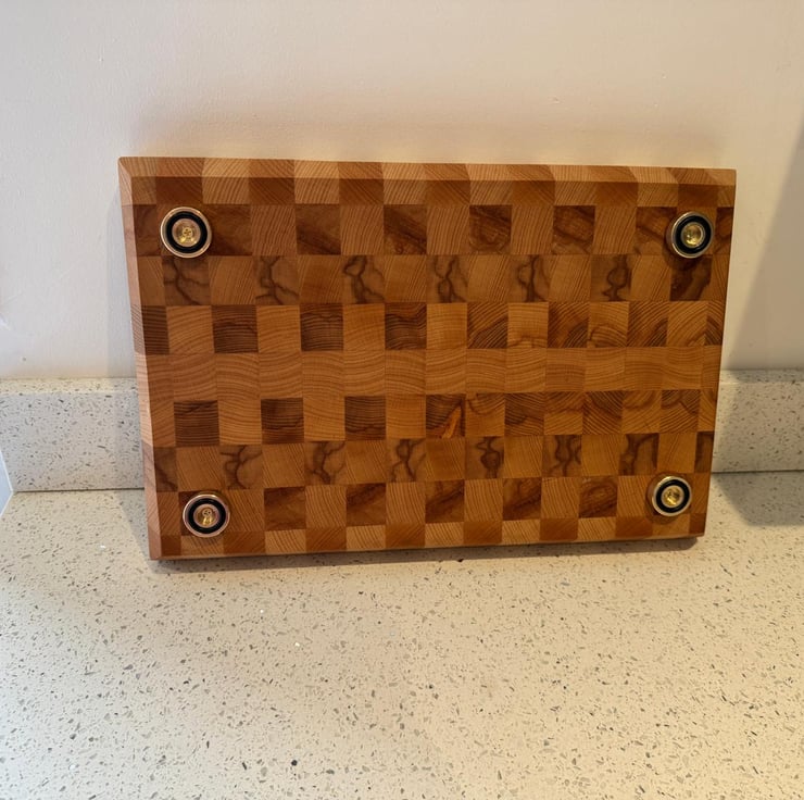 Handcrafted from premium beech with end grain construction for superb durability and natural beauty. The chamfered edges provide comfortable handling and a refined finish, while solid brass feet elevate the board both functionally and aesthetically, preventing slipping and protecting your work surface. Board dimensions are 410mm x 270mm x 50mm thick. End grain construction absorbs impact and resists knife marks better than edge grain boards, keeping your blades sharper for longer. The wood fibres run perpendicular to the surface, creating a self-healing quality that maintains the board's integrity through years of use.