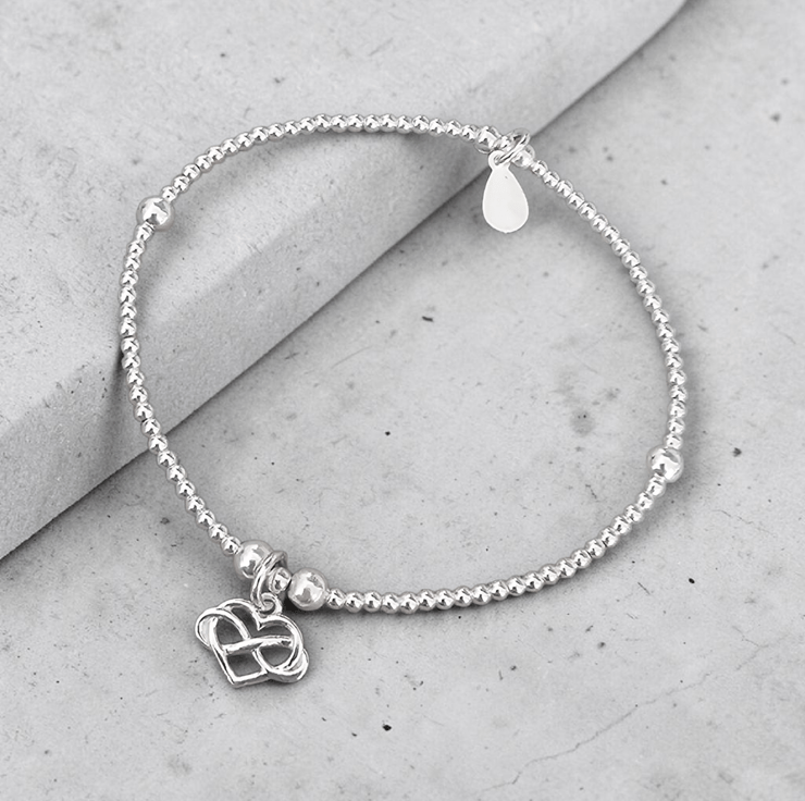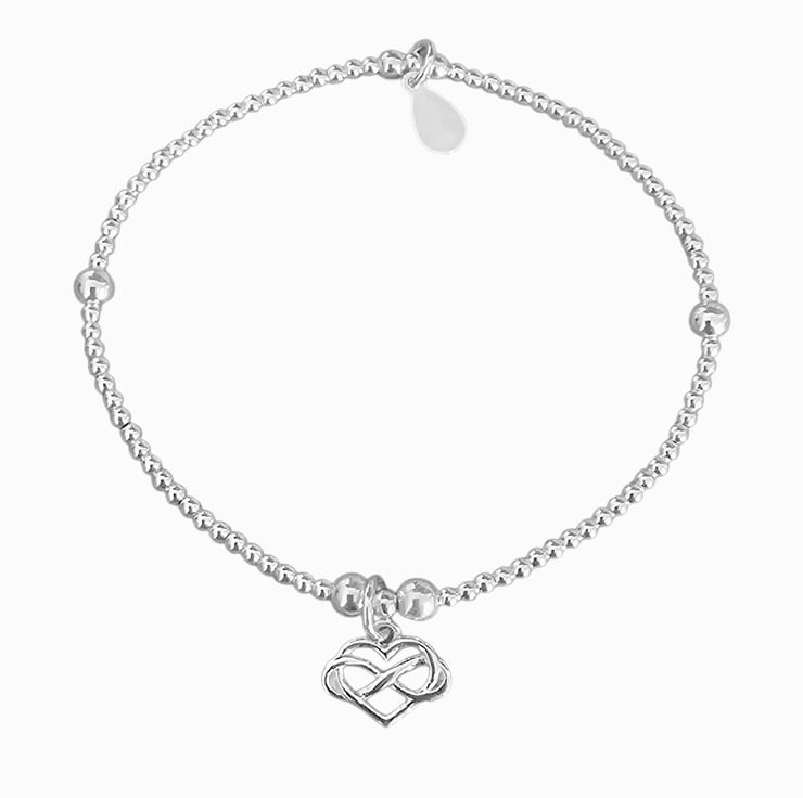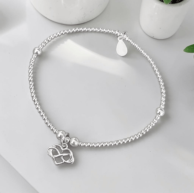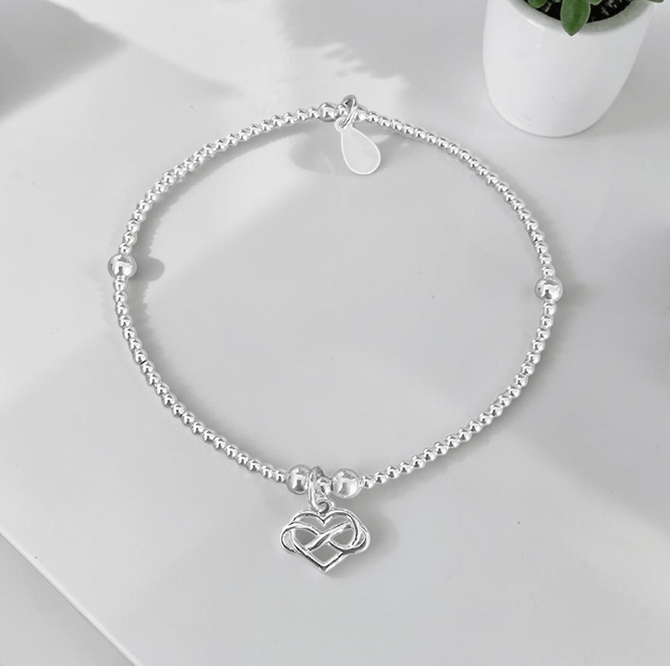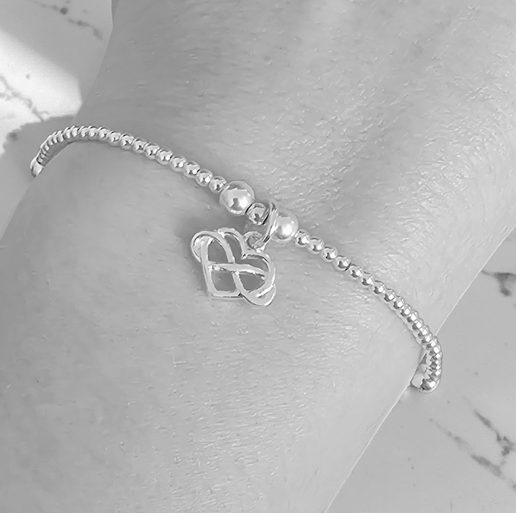 Dainty Sterling silver infinity heart charm stretch bracelet. Beautifully designed and and a wonderful bracelet to own. Perfect for any jewellery collection.