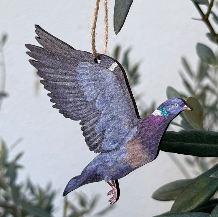 Decoration for your home with a unique and very pretty Wood Pigeon in flight. Pigeons are gaining more popularity and love this year, which I'm very happy to see as I've always loved these birds.