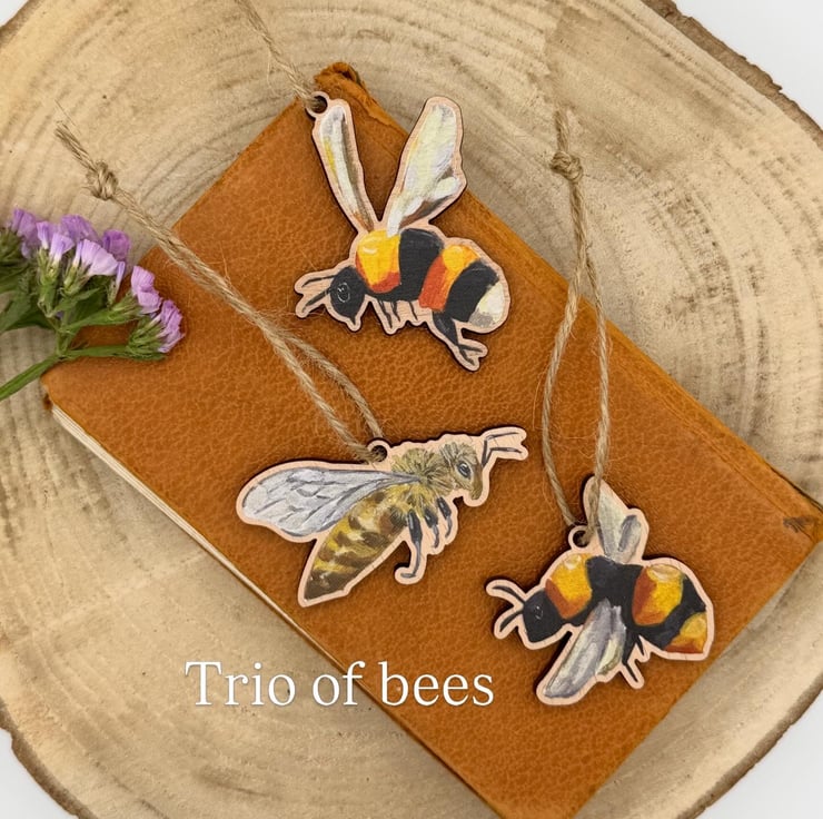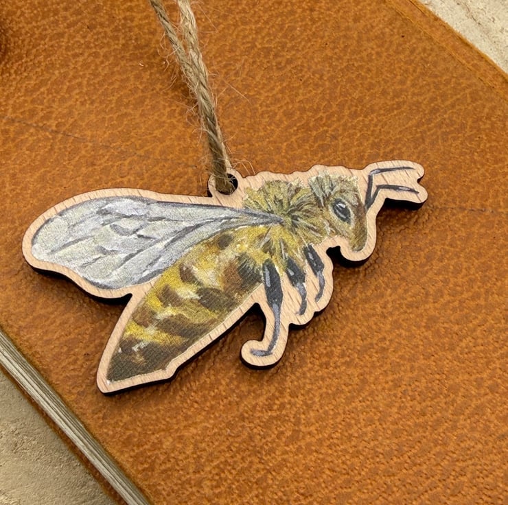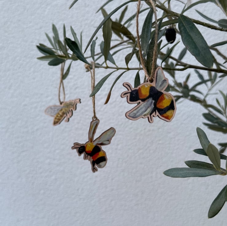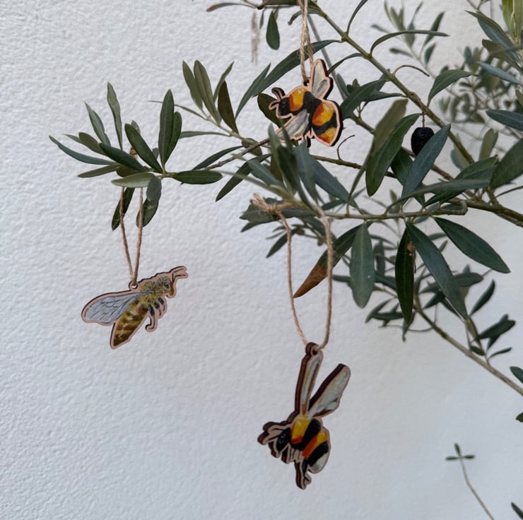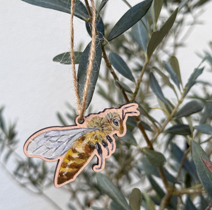 Decoration for your home with a Honey Bee design. Made using sustainable fsc-certified wood, with my painting uv printed and laser cut around the outline of the insect. Ready to hang on a branch, handle or hook. They make wonderful gifts as well as all year round decorations for your home.