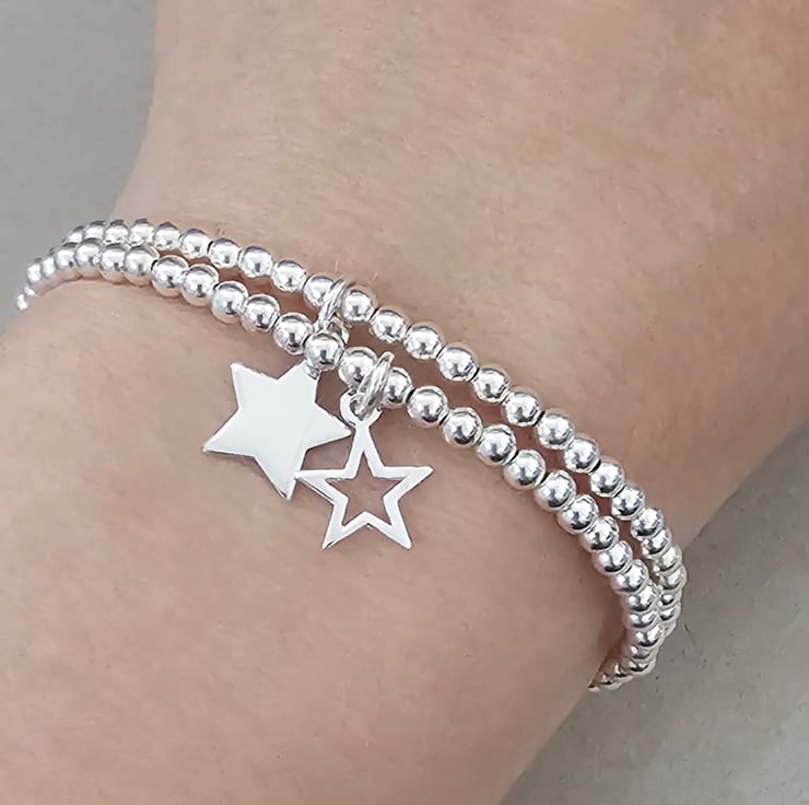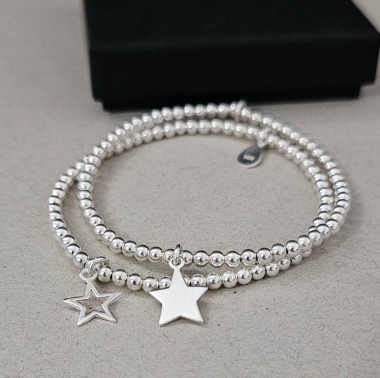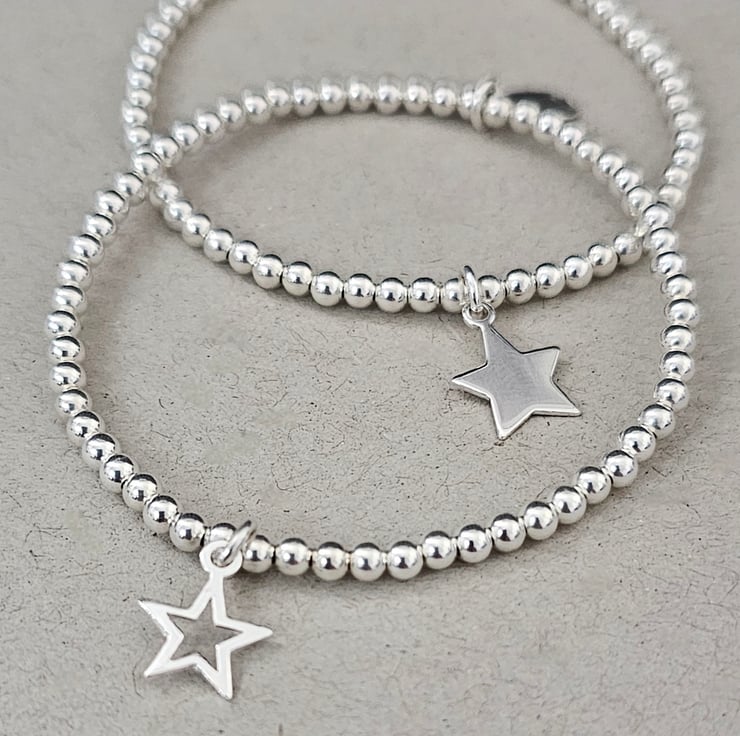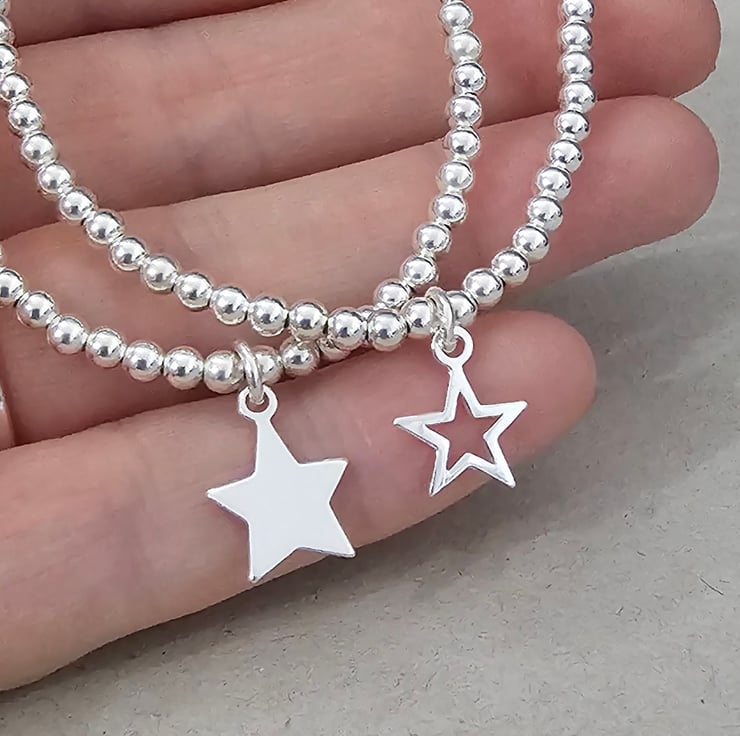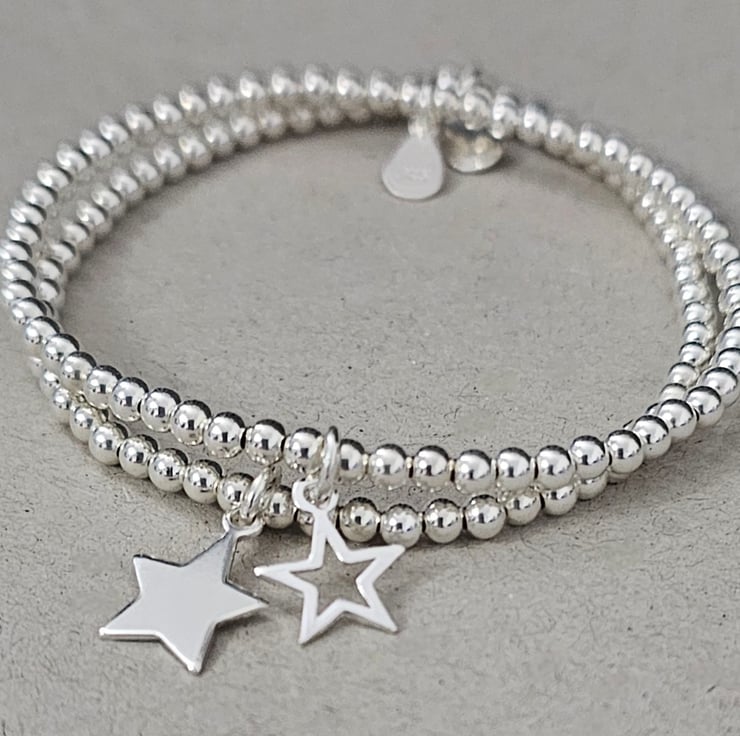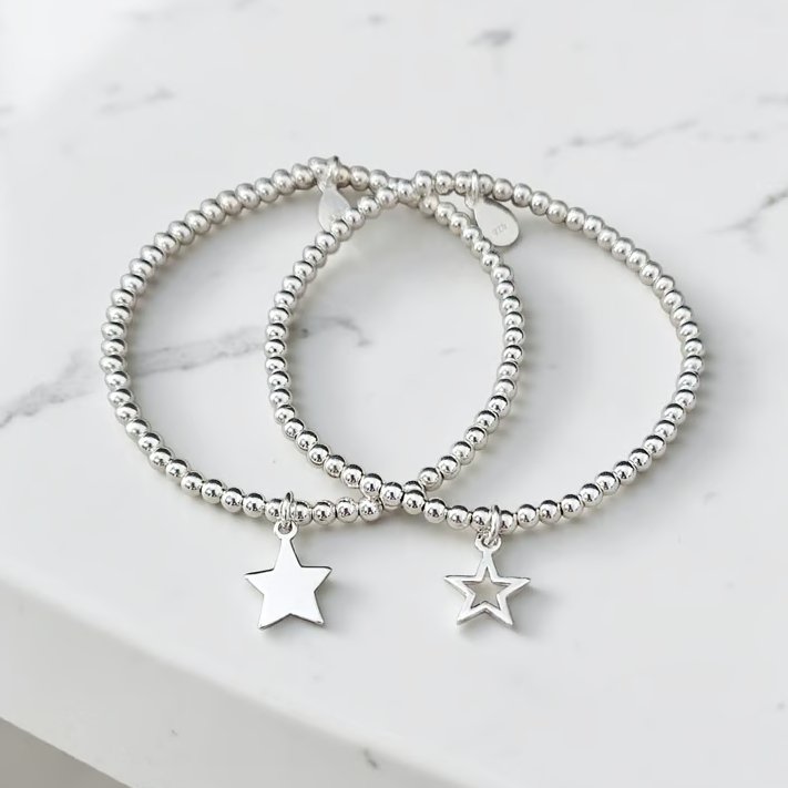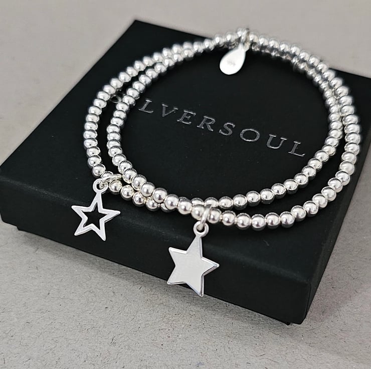 A perfect addition to any jewellery collection. A Stunning dainty small Star Charm stretch bracelet that has style and beautifully designed with top quality Sterling silver. These cute little bracelets make a perfect gift or treat for yourself. Perfect for wearing with other bracelets or individually. Bracelet comes complete with a signature Silversoul Collection gift box & gift Bag.